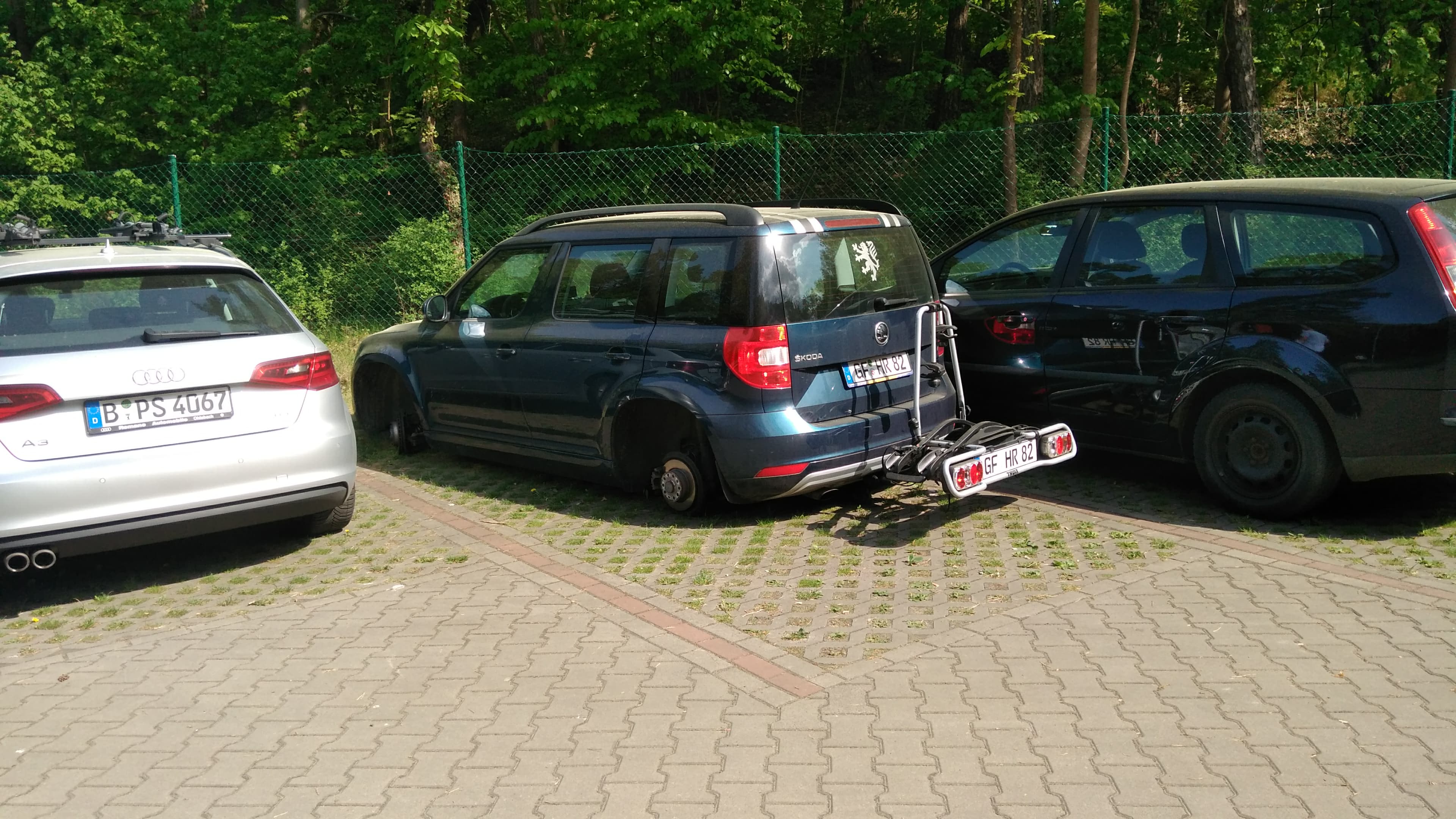 Rzadkość. Dawniej kradli koła ale obecnie to coraz rzadsze zjawisko. Przykre. Co ten Niemiec o nas pomyśli. Przykre. Żuliki jakieś pewnie to zrobiły albo młode ćpunki.