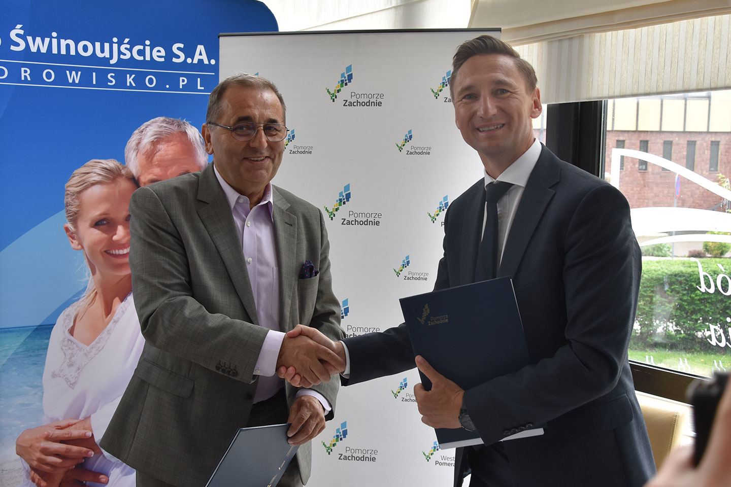Po uroczystości wmurowania kamienia węgielnego pod budowę Regionalnego  Ośrodka Rehabilitacji Leczniczej  „Henryk”, Marszałek Województwa Zachodniopomorskiego Olgierd Geblewicz i Prezydent Świnoujścia Janusz Żmurkiewicz podpisali dziś  w siedzibie Uzdrowiska Świnoujście S.A. umowę na dofinansowanie inwestycji pn. „Modernizacja sieci deszczowych na terenie miasta Świnoujście – etap I” Całkowita  wartość projektu wynosi 10 804 303,22 złotych; wartość dofinansowania to 3 262 847,86 zł. Dofinansowanie pochodzi z Regionalnego Programu Operacyjnego Województwa Zachodniopomorskiego na lata 2014-2020.