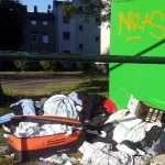 Opracowali sposób wyjmowania ubrań ze środka. Wybierają te, które im się podobają, a resztę wyrzucają. Problem w tym, że po „skoku” na pojemnik, nie wkładają ubrań do środka, lecz zostawiają obok. Tak pozostawione ubranie jest narażone np. na opady deszczu i nie będzie się już nadawać do ponownego użytku.