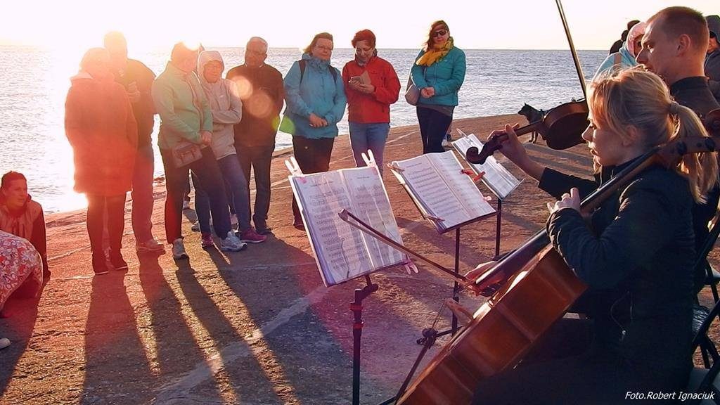 Przy zachodzącym słońcu, trio smyczkowe zaintonowało kilka utworów Zbigniewa Wodeckiego. Mieszkańcy i turyści słuchali piosenek w zadumie i z uwagą.