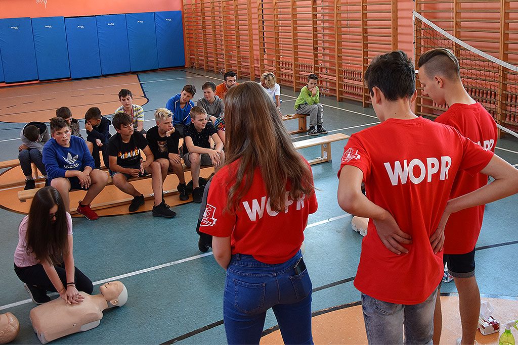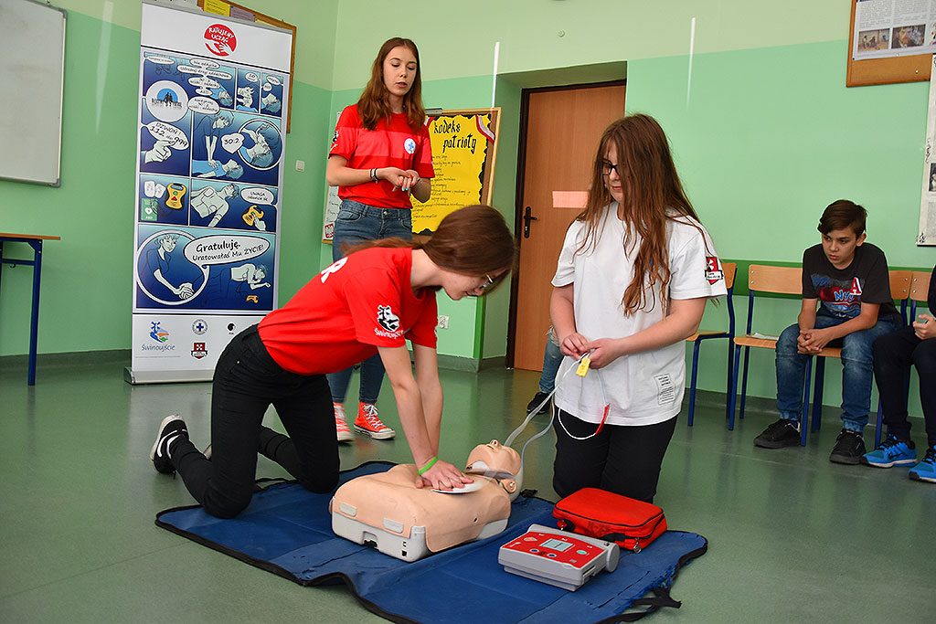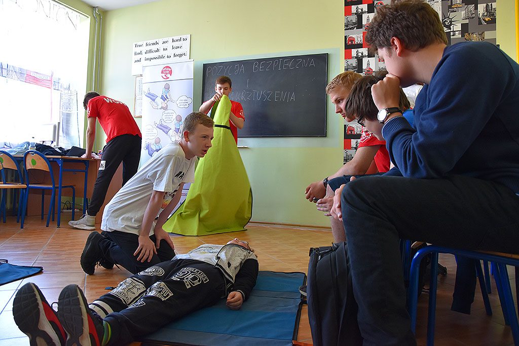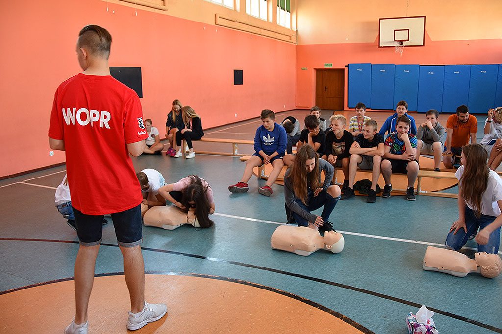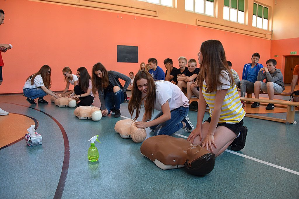 – Nauczyliśmy jak udzielać pierwszej pomocy, stosować AED, układać w pozycji bezpiecznej oraz sprawdziliśmy na fantomach z elektronicznym pomiarem skuteczności jak sobie radzą gimnazjaliści podczas resuscytacji – mówi Jarosław Włodarczyk, instruktor.