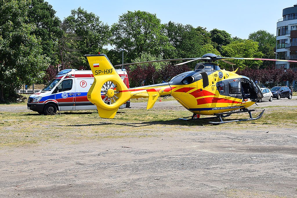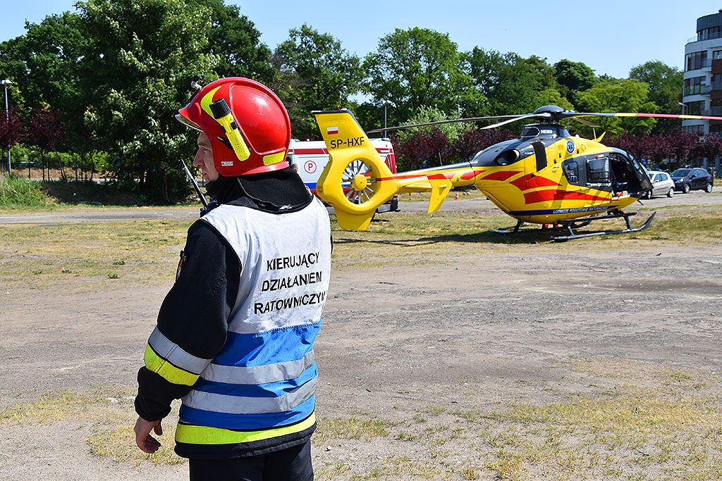 Ratownicy Lotniczego Pogotowia Ratunkowego przylecieli w poniedziałek w południe na pomoc małemu pacjentowi. Śmigłowiec wylądował na parkingu przy ulicy Legionów. Ratownicy wysiedli z maszyny i przesiedli się do wozu strażackiego, który zawiózł ich na ul Chełmońskiego.