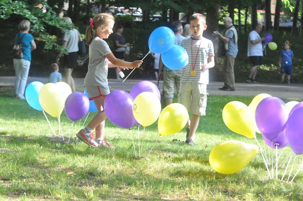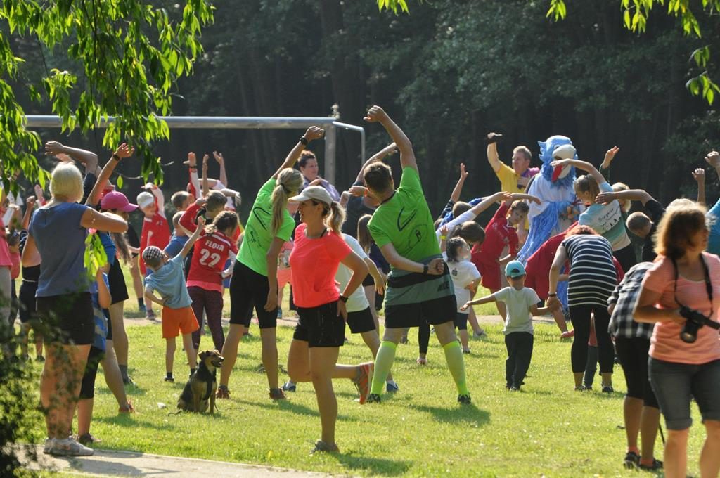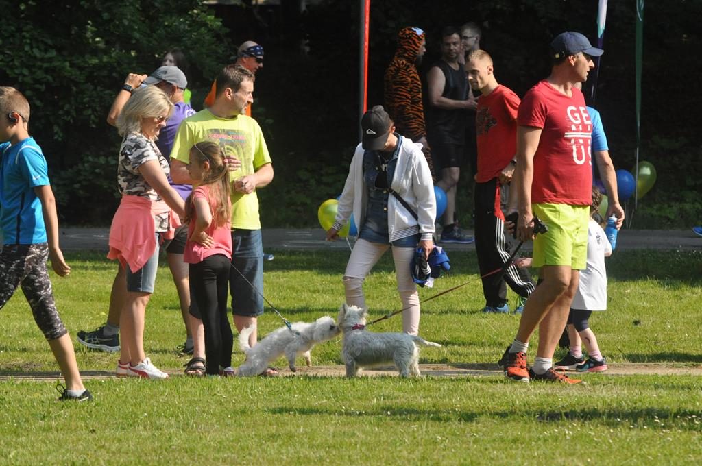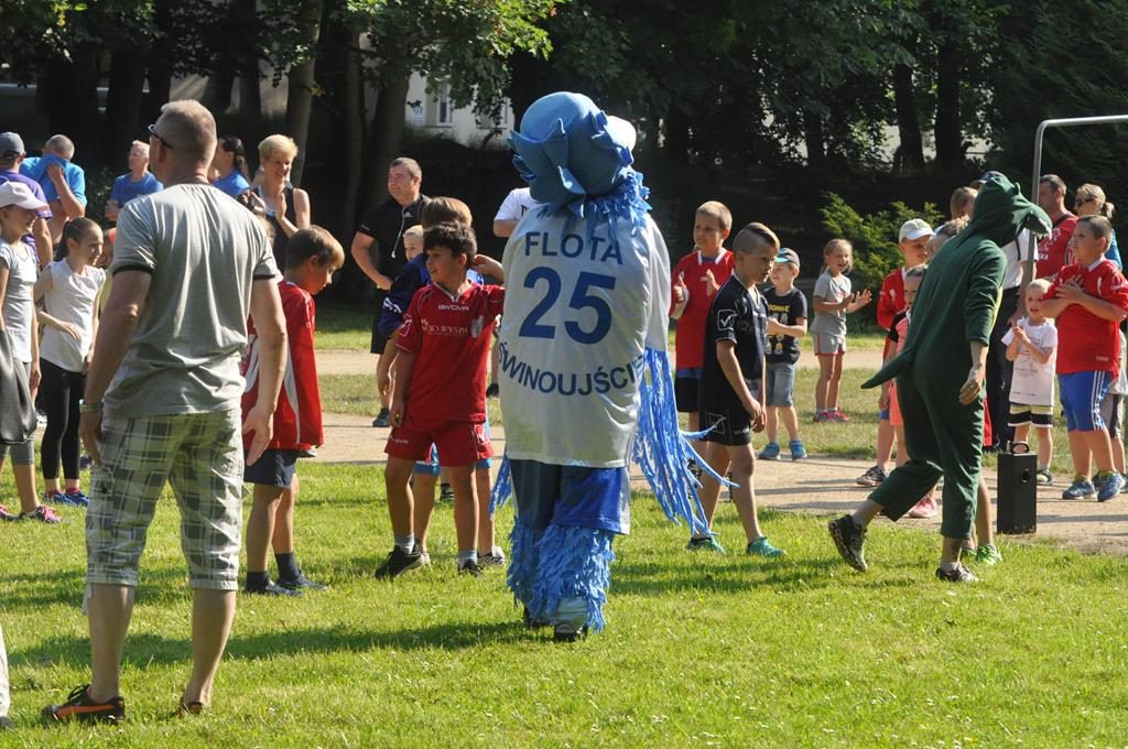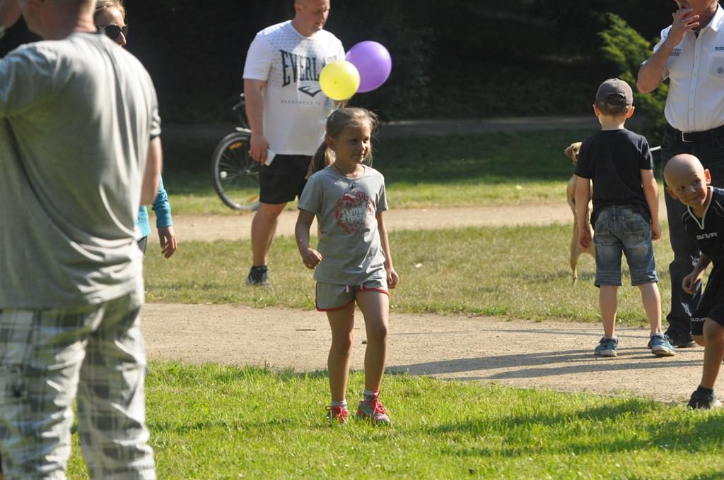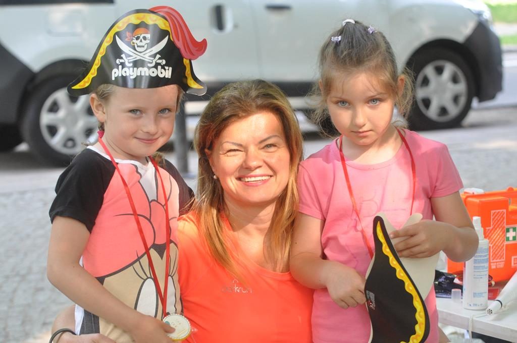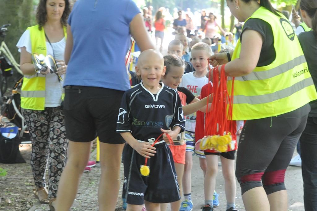 Jak się później okazało były to zaprzyjaźnione zwierzaki z parkrunowej ferajny oraz zaprzyjaźniona maskotka z klubu piłkarskiego Flota, które przyszły pomóc wszystkim chętnym dzieciom w swojej biegowej przygodzie z okazji Dnia Dziecka w ramach Parkrun 99. Wszystkie dzieci, które zdecydowały się aktywnie rozpocząć weekendowy poranek mogły wziąć udział w specjalnie przygotowanym dla nich biegu, a że przyszła ich dość spora gromadka, bo 50-cio osobowa ekipa , trzeba było je podzielić na dwie grupy startowe. Ale to nieważne ile dzieciaczków wystąpiło i które było najszybsze, bo dzisiaj wszyscy byli zwycięzcami i byli najlepsi. Każdy otrzymał okolicznościowy dyplom, słodkie medale i drobne upominki od naszych partnerów.