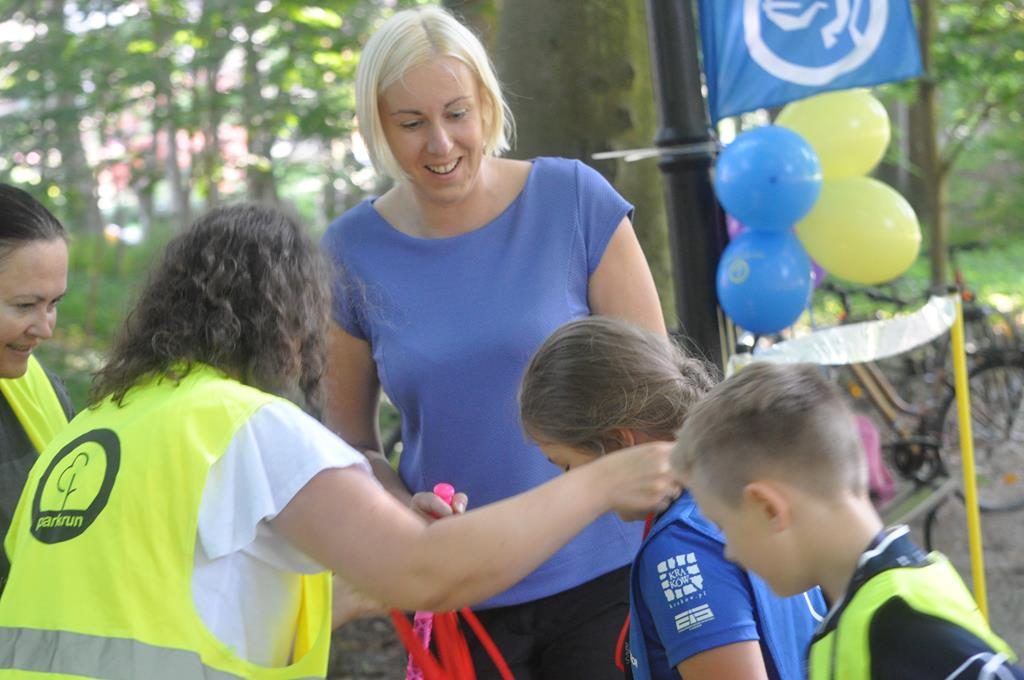 Dzisiejszy 99. parkrun był wyjątkowy nie tylko ze względu na obecność radosnego krokodyla Anula, rozbrykanego tygrysa Gregorego oraz wszędobylskiej mewy Flotusia, ale i ze względu na fakt, iż dorośli wolontariusze zostali dzisiaj zastąpieni przez niezwykle zdolne dzieci, które postanowiły z racji swojego święta na ten jeden dzień przejąć stery organizacji Parkrunu. Starsi wolontariusze, koordynator i organizatorzy byli pod ogromnym wrażeniem w jaki sposób młodzi dublerzy dają sobie radę z tymi bądź co bądź trudnymi zadaniami związanymi z obsługą biegu (pomiar czasu, rozdawanie tokenów, skanowanie wyników, zabezpieczanie trasy czy obsługa strefy z jedzeniem i wodą) i składają im serdeczne podziękowania jednocześnie zapraszając do pomocy na kolejne edycje Parkrun.