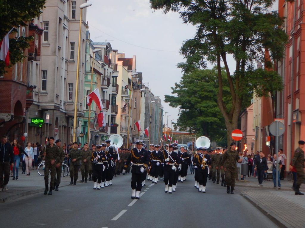 Orkiestra wojskowa, marynarze z pochodniami, poczty sztandarowe, młodzież i dzieci ze świnoujskich szkół oraz mieszkańcy miasta, szli w piątek w uroczystym capstrzyku, czyli wieczornym przemarszu oddziałów wojskowych, drużyn harcerskich ulicami miasta, odbywający się w wieczór poprzedzający uroczystość z ich udziałem.