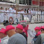 Teraz czeka ich już trudniejsza oceaniczna żegluga, w drugim etapie rocznicowego niezwykłego wokółziemskiego Rejsu Niepodległości, na trasie ze Szczecina na Teneryfę,  i dalej, wokół świata, przez trzy oceany.  Tym razem – oprócz załogi stałej – na pokładzie „Daru Młodzież” jest kolejna grupa chłopców i dziewcząt, laureatów ogólnopolskiego konkursu (na zdjęciach w białych kombinezonach, w barwach Orlenu, jednego ze sponsorów wyprawy), oraz pierwsza grupa studentów macierzystej gdyńskiej Akademii Morskiej (w mundurach).. Tak będzie już do końca wyprawy, z kolejnymi podobnymi  podmianami młodzieżowych załóg w dalszych portach, o czym już pisałem…