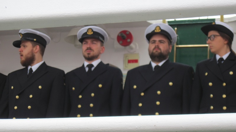 Teraz czeka ich już trudniejsza oceaniczna żegluga, w drugim etapie rocznicowego niezwykłego wokółziemskiego Rejsu Niepodległości, na trasie ze Szczecina na Teneryfę, i dalej, wokół świata, przez trzy oceany. Tym razem – oprócz załogi stałej – na pokładzie „Daru Młodzież” jest kolejna grupa chłopców i dziewcząt, laureatów ogólnopolskiego konkursu (na zdjęciach w białych kombinezonach, w barwach Orlenu, jednego ze sponsorów wyprawy), oraz pierwsza grupa studentów macierzystej gdyńskiej Akademii Morskiej (w mundurach).. Tak będzie już do końca wyprawy, z kolejnymi podobnymi podmianami młodzieżowych załóg w dalszych portach, o czym już pisałem…