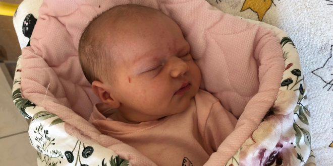 Ur. 14.06.2018 o godz. 12:34. Waga/długość: 3280/52 cm. Imiona rodziców: Kasia i Sebastian.