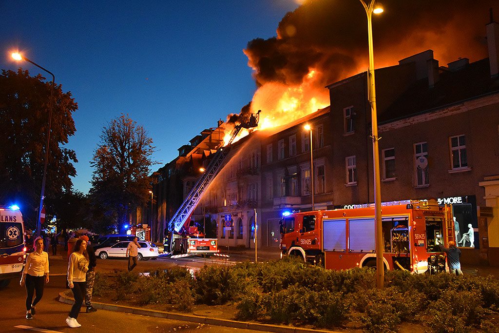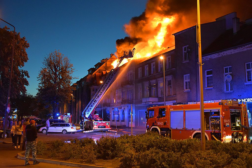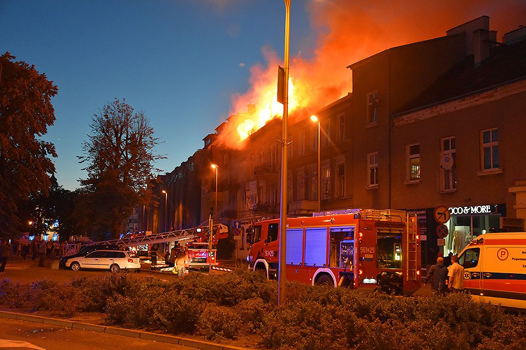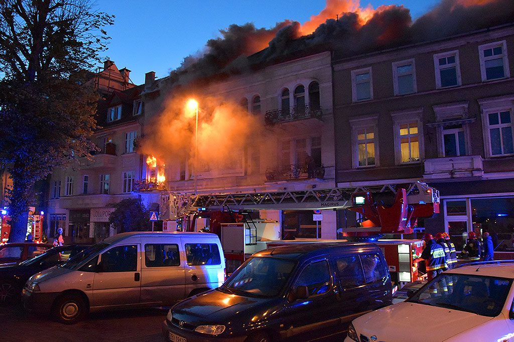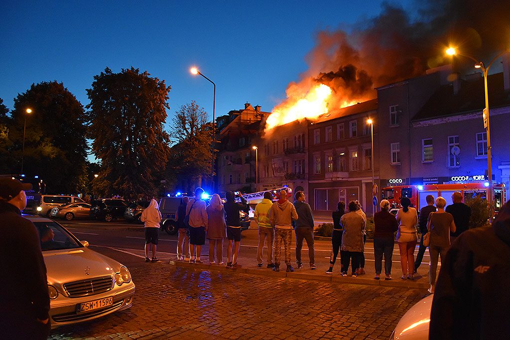 Ogień wybuchł na piętrze opuszczonego budynku przy ulicy Armii Krajowej 3 w Świnoujściu. Na miejsce skierowano wszystkie zastępy straży pożarnej z lewo- oraz prawobrzeżnej części miasta. Ewakuowano ludzi z sąsiedniej kamienicy.