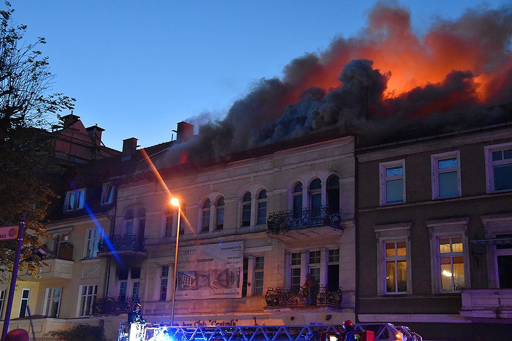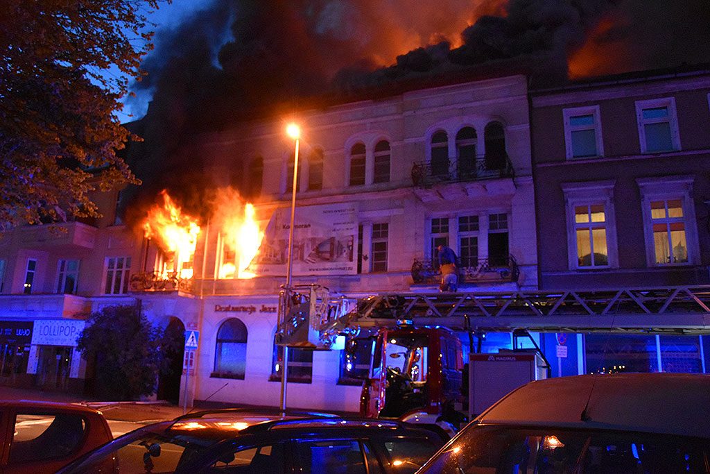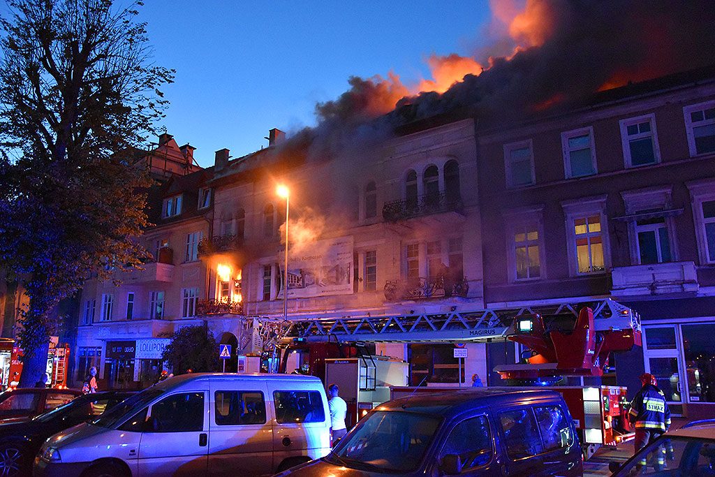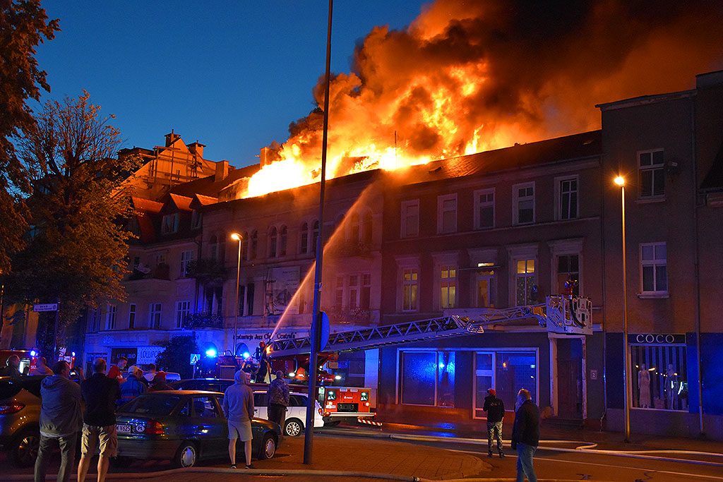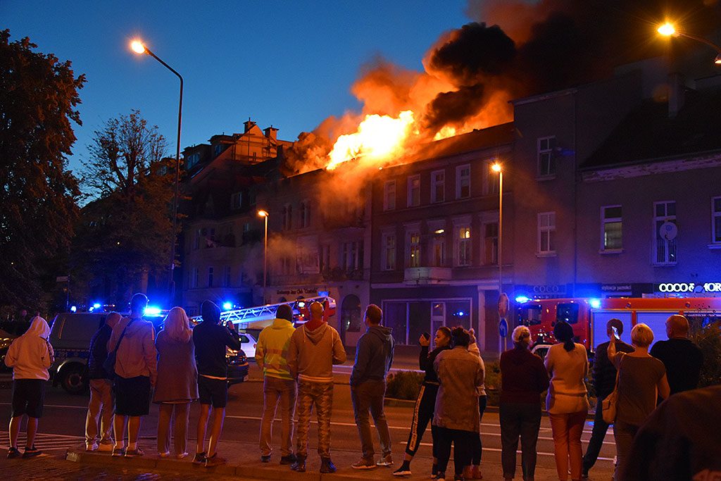 Ogień wybuchł na piętrze opuszczonego budynku przy ulicy Armii Krajowej 3 w Świnoujściu. Na miejsce skierowano wszystkie zastępy straży pożarnej z lewo- oraz prawobrzeżnej części miasta. Ewakuowano ludzi z sąsiedniej kamienicy.