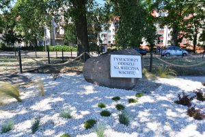 Wraz z wymianą płyty na nową, uporządkowano teren wokół, nasadzono rośliny, dodano akcent morski – linę. W takich okolicznościach teren ten wraz z kamieniem i tablica nabrał właściwego charakteru.
