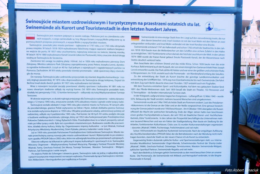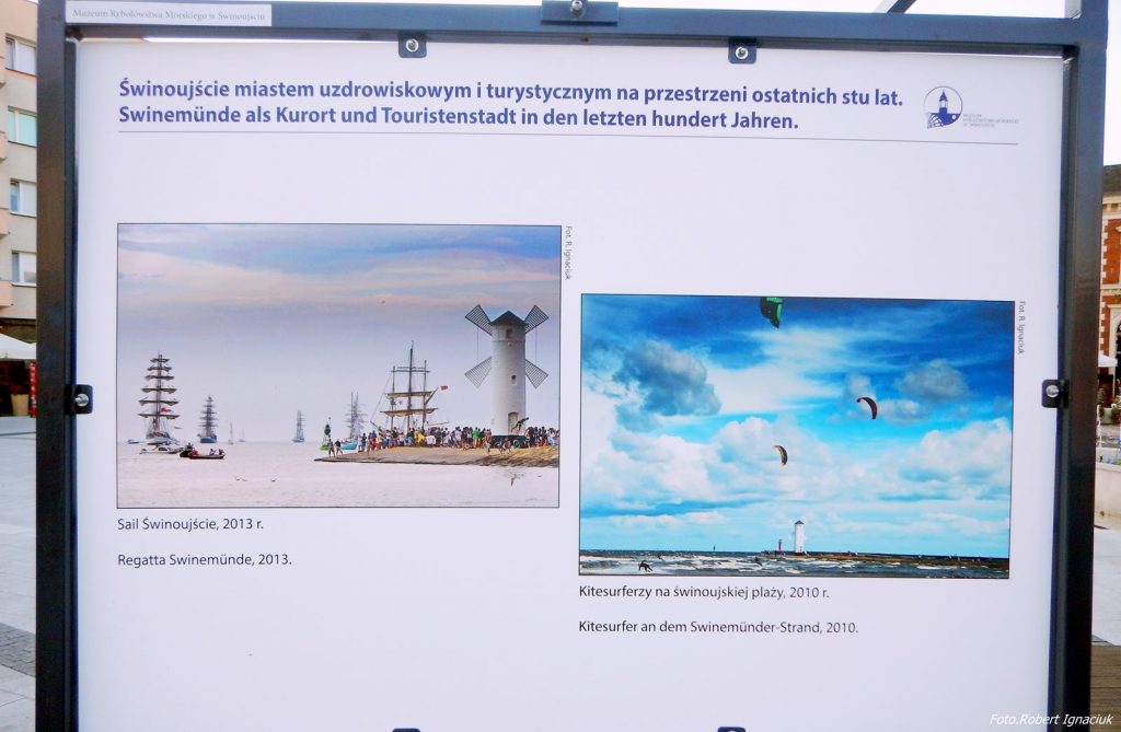 – Do rozwoju Świnoujścia jako uzdrowiska przyczyniała się dogodna komunikacja i rozwój żeglugi pasażerskiej. Biała flota zapewniała połączenie z portami bałtyckimi – przykładowo w 1921 roku z drogi morskiej w Świnoujściu skorzystało około 20 tys. pasażerów. W 1876 r. doprowadzono do Świnoujścia drogę kolejową [dojazd do Berlina wynosił około 2 godz.], a w 1927 roku wybudowano lotnisko. To wszystko sprawiało, że Świnoujście odwiedzało przed wojną od 20 – 50 tysięcy rocznie kuracjuszy i gości. W tym czasie liczba mieszkańców wynosiła około 12 tysięcy. Miasto odwiedzane było również przez koronowane głowy co znacznie podnosiło prestiż miasta. Tutaj też doszło do spotkania pomiędzy carem Rosji Mikołajem II a cesarzem Niemiec Wilhelmem II. Odbywało się na redzie, na specjalnie wybudowanym pomoście w połowie drogi pomiędzy okrętami przywódców – napisano we wstepie do wystawy.