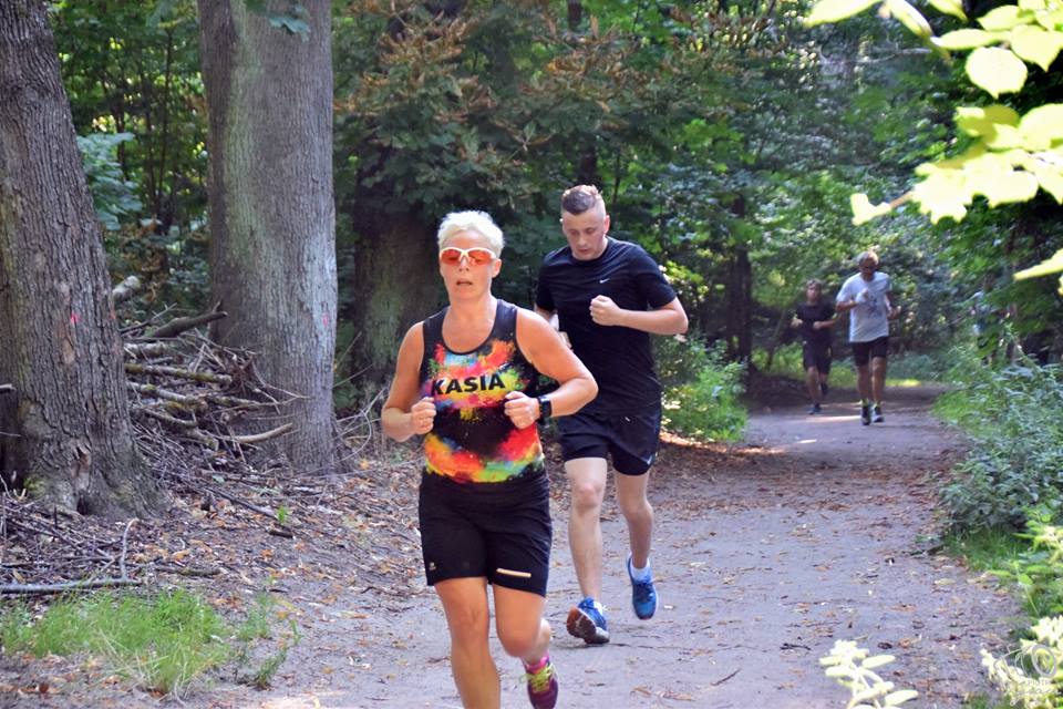 Aby uczestników dzisiejszego biegania omijały kontuzje lub inne zdrowotne niespodzianki, bezpośrednio przed biegiem o poprawne rozgrzanie ich mięśni zadbała Karolina ROMAŃSKA przeprowadzając krótką, aczkolwiek intensywną rozgrzewkę. Tuż przed samym startem w blasku fleszy i przy gromkich brawach Mariusz MAJEWSKI oraz Adam BRUDNIK odebrali okolicznościowe dyplomy za ukończenie 50 biegów Parkrun.