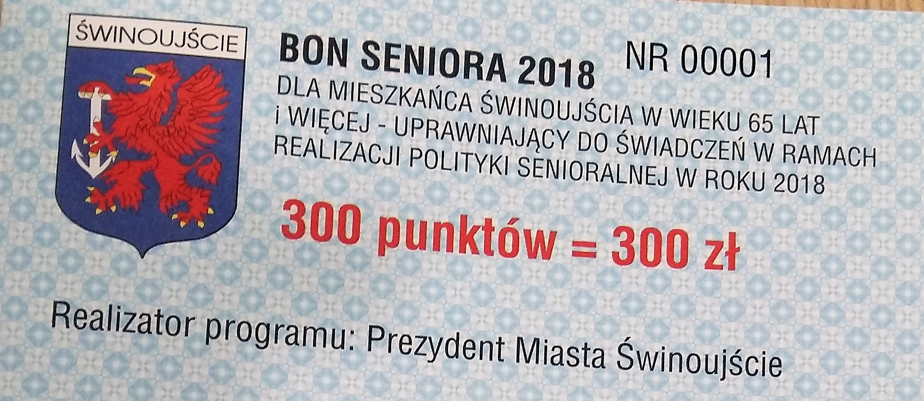 Na wniosek zainteresowanych od poniedziałku 6 sierpnia 2018 r. Bony Seniora wydawane będą w  godzinach 8.30 – 15.00. Bony przysługują świnoujścianom, którzy ukończyli lub skończą w tym roku 65 lat. Na ich podstawie seniorzy mogą za darmo skorzystać z 440 różnych świadczeń: badań lekarskich, ambulatoryjnych, rehabilitacyjnych oraz wydarzeń kulturalnych.
