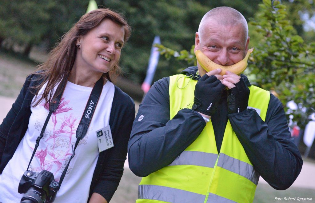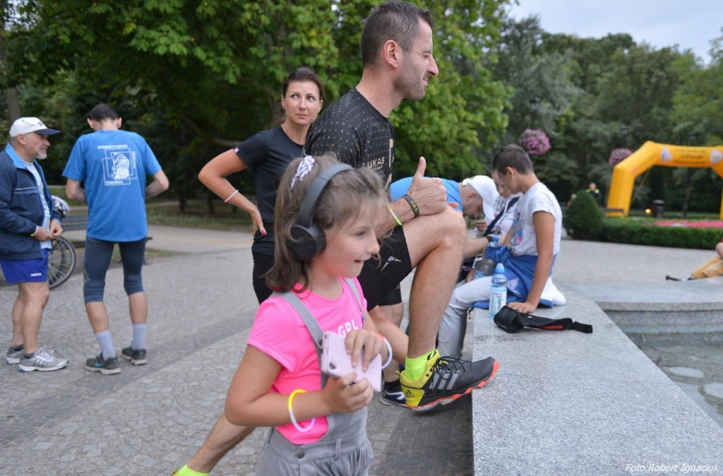 Po radosnym, wspólnym starcie i pierwszym okrążeniu, a było ich pięć, stawka biegaczy się rozciągnęła. Jak to zawsze na biegach bywa byli ścigacze, truchtacze, dreptacze i wszyscy w tym samym składzie w wyśmienitych humorach dotarli do mety. Największy aplauz i dodatkową asystę