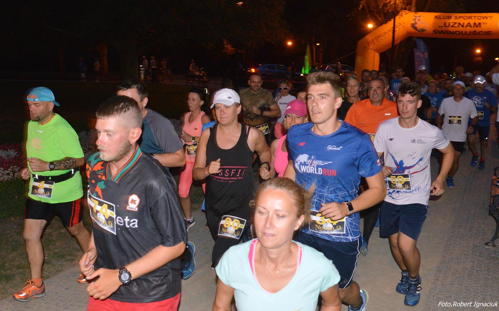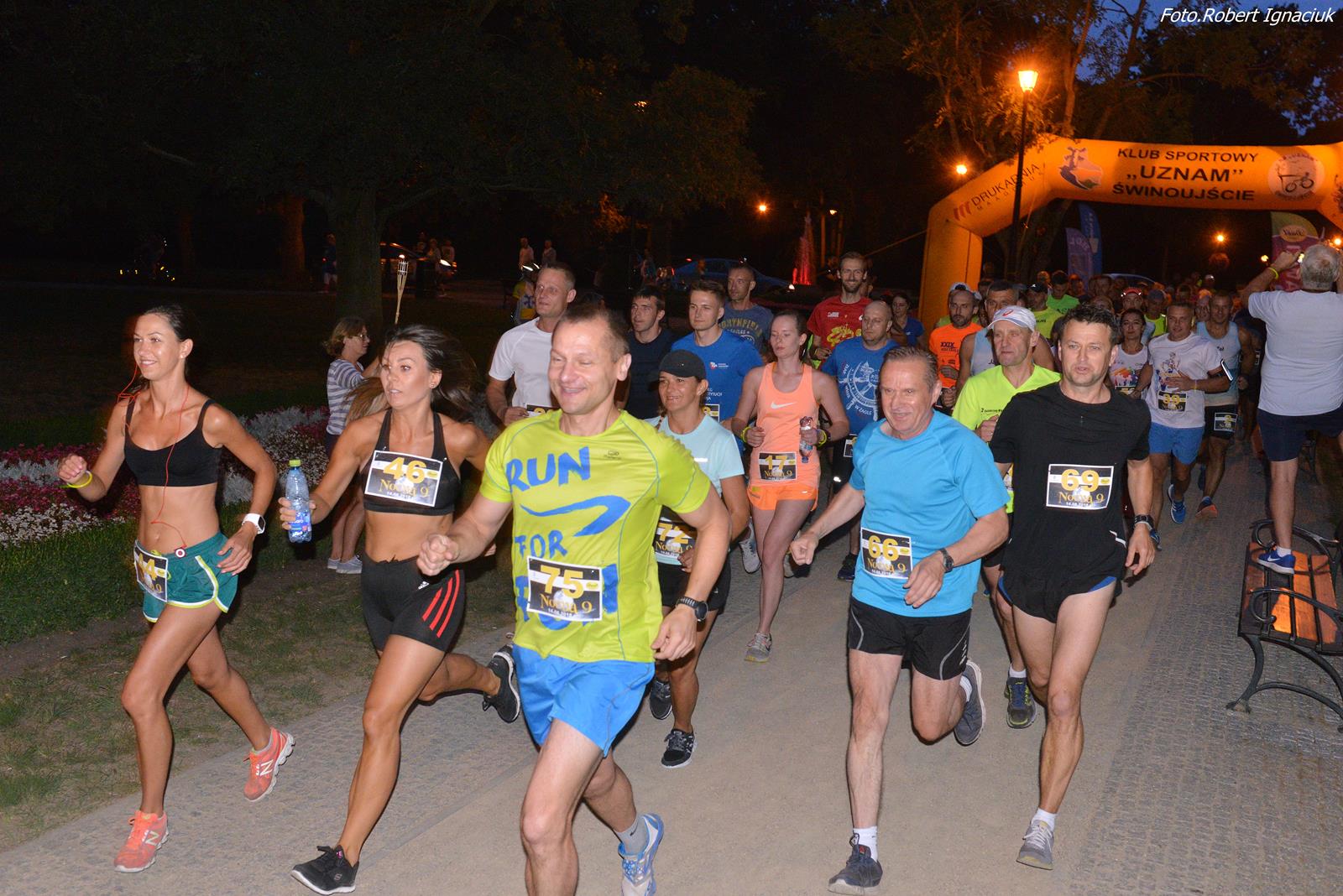 Dokładnie o 21:00 (14 sierpnia 2108), tuż przy parkowych fontannach, wystartowała Nocna 9, bieg zorganizowany przez świnoujskich biegaczy, przy dużym wsparciu lokalnych sponsorów, dla mieszkających i wypoczywających w naszym mieście biegaczy. Limit biegu to 100 miejsc, a więc bieg kameralny. Czas startu to pora zmierzchu, a więc bieg nastrojowy. Miejsce biegu to Świnoujski Park Zdrojowy, atmosfera i miejsce jedyne w swoim rodzaju, a więc bieg niepowtarzalny!
