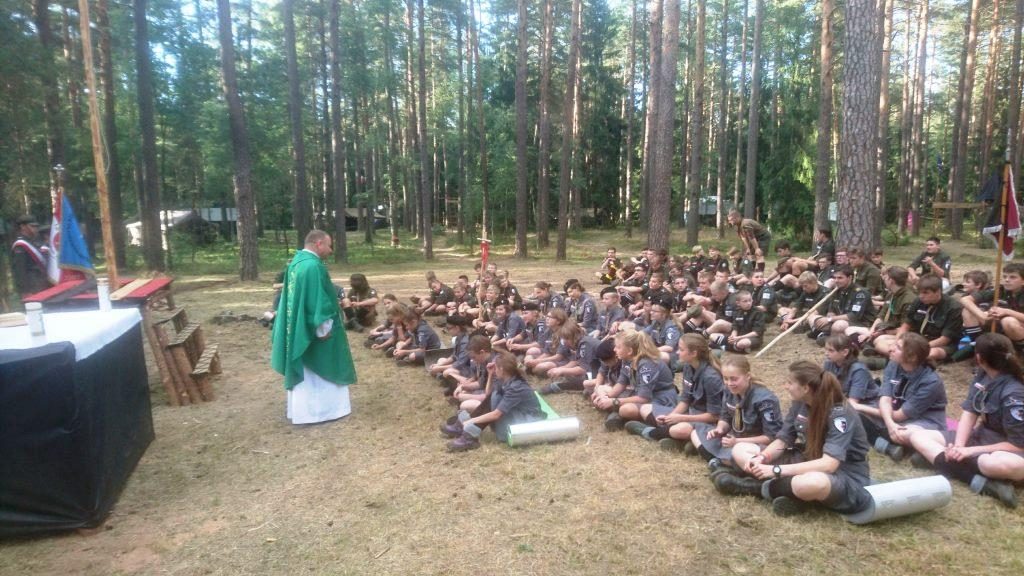 W naszej harcerskiej obozowej przygodzie nie zabrakło chwil poważnych i typowo harcerskich. Aż 5 osób złożyło przyrzeczenie harcerskie, kilka zdobyło nowy stopień, chustę czy lilijkę, byli mianowani nowi funkcyjni. Każdą niedzielę pamiętaliśmy, by poświęcić na mszę św. Raz uczestniczyliśmy w niej w kościele w Mikaszówce, w kolejnym tygodniu msza św. została odprawiona na naszym obozie.