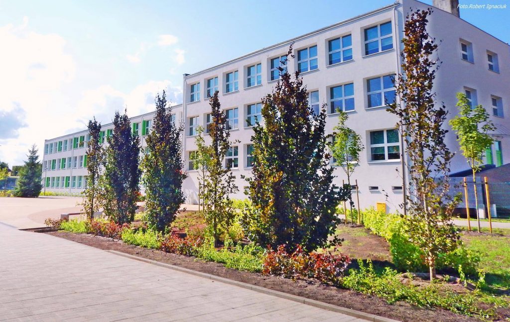 Dzieci, które wrócą w poniedziałek do szkoły będą zapewne pod wrażeniem. Wraz z remontem ulicy Kościuszki przebudowano plac przed głównym wejściem do szkoły. Inaczej niż wcześniej zagospodarowano zieloną przestrzeń przed szkołą.