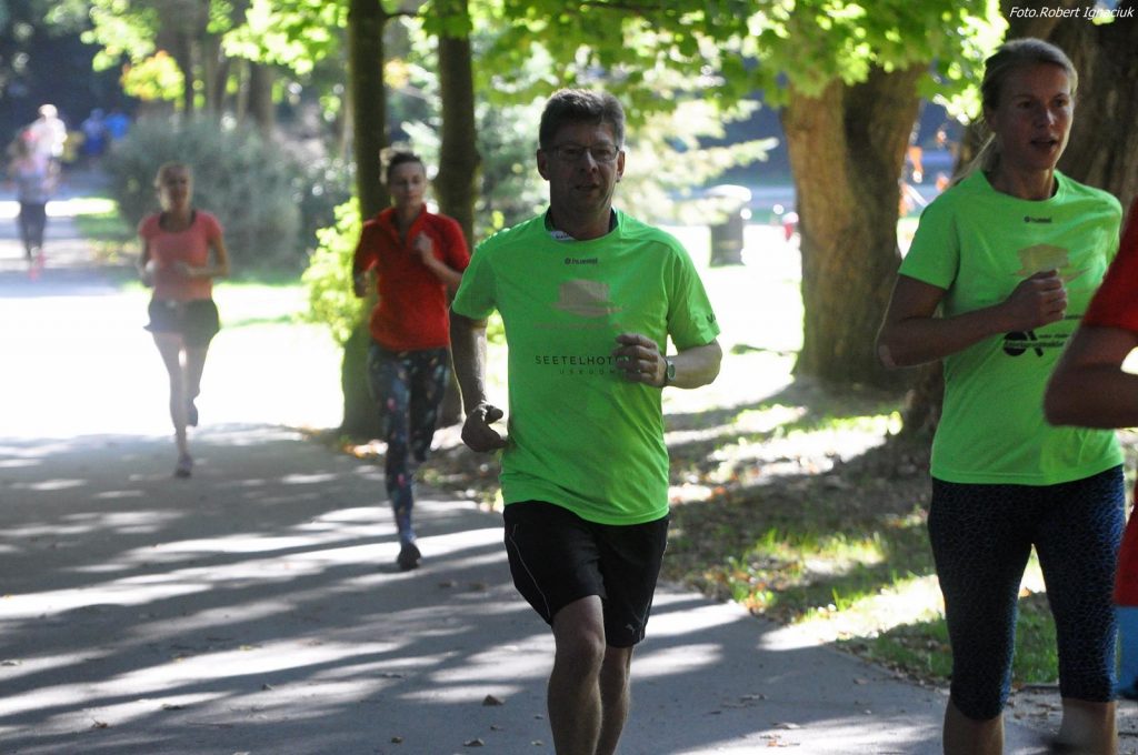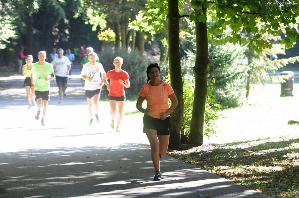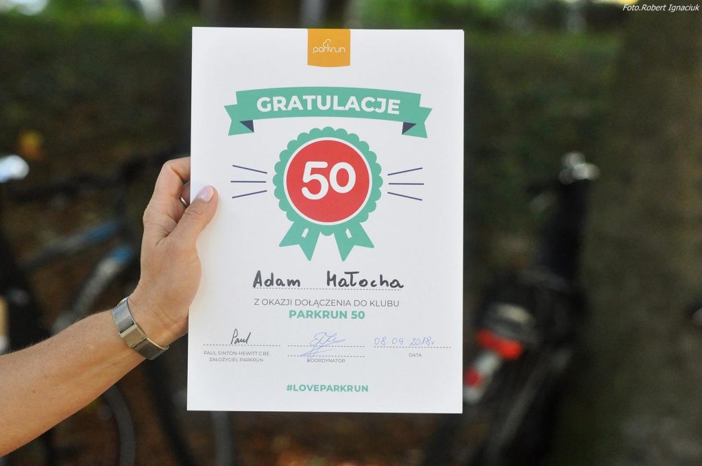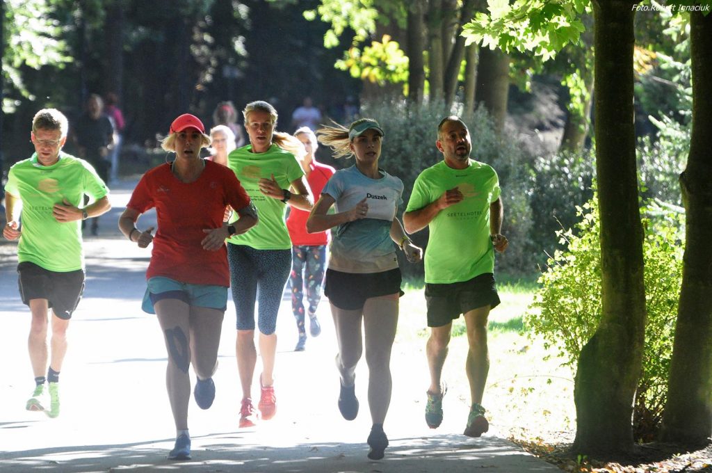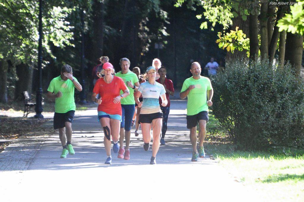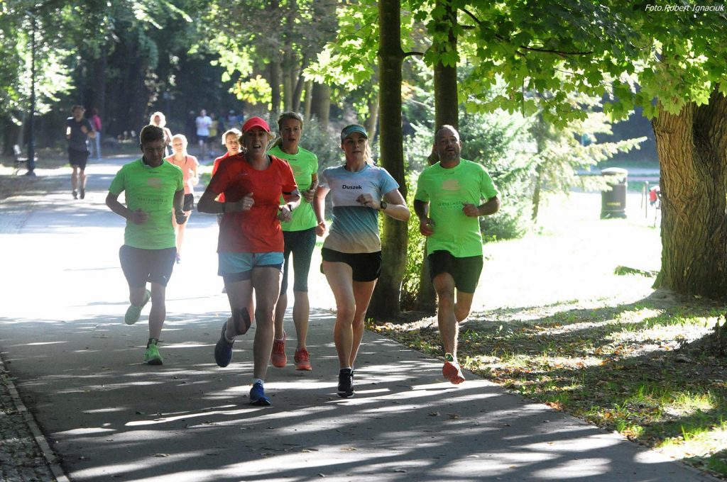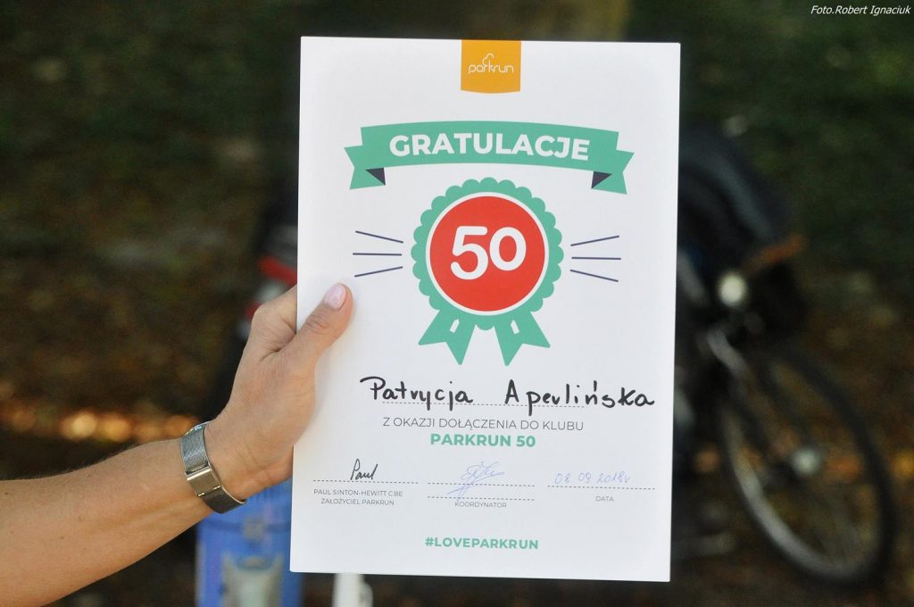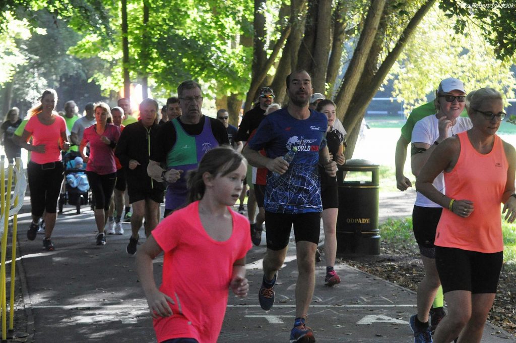 Po profesjonalnej rozgrzewce, przed samym startem podziwiać można było tych, którzy są na parkrunie najdłużej. Monika Murawska stanęła na linii startu, po raz setny, a Patrycja Aperlińska i Adam Malocha po raz 50. Wszyscy biegacze odśpiewali „sto lat” parkrunowej koordynatorce Elżbiecie Jabłońskiej z okazji jej urodzin.