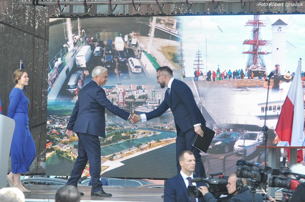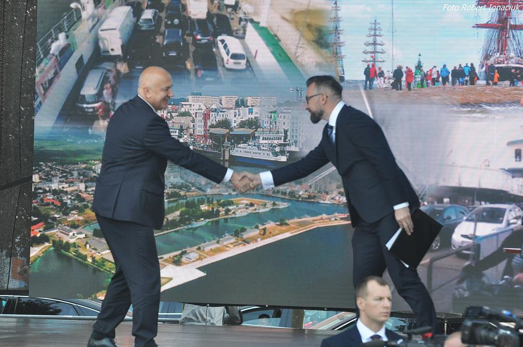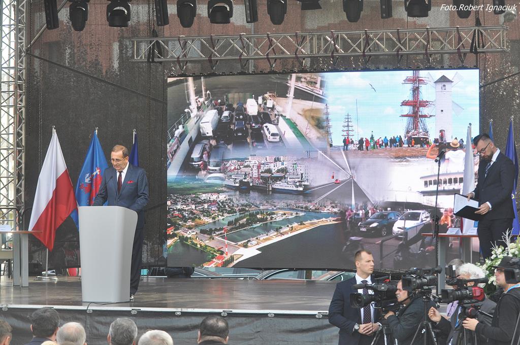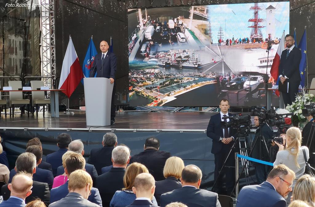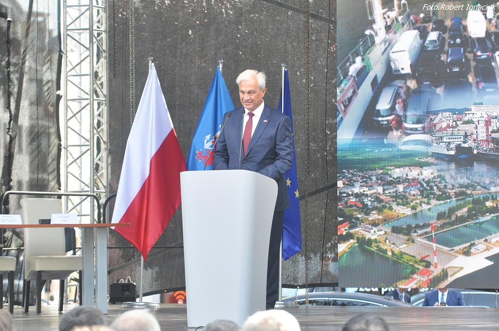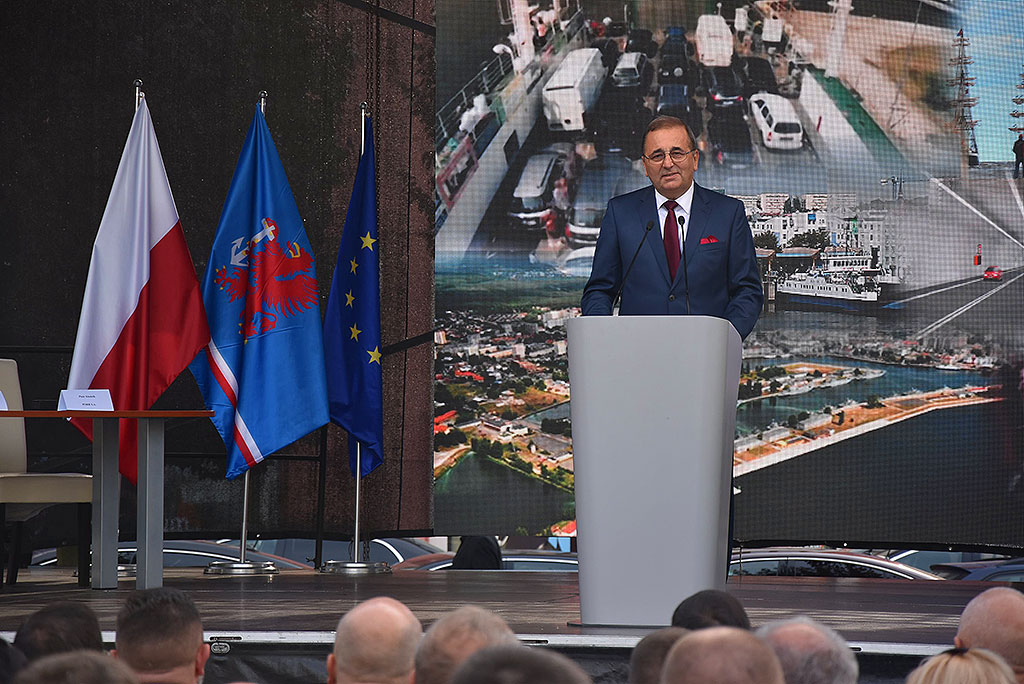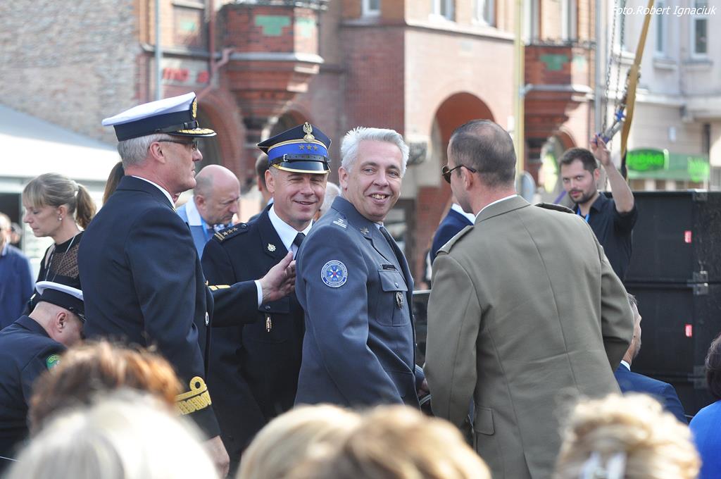 Uroczystość przekazania obowiązków rozpoczęła się od parady burtowej. Oficerowie zdający i obejmujący obowiązki, w towarzystwie zaproszonych gości, przyjęli z pokładu motorówki hydrograficznej MH-1 paradę burtową okrętów stacjonujących w Porcie Wojennym Świnoujście. Złożono również wiązankę kwiatów pod pomnikiem „Tym, którzy przywrócili Pomorze macierzy”. Na uroczystej zbiórce pododdziałów flotylli, meldunek o zdaniu i przyjęciu obowiązków przyjął Inspektor Marynarki Wojennej wiceadmirał Jarosław Ziemiański.