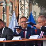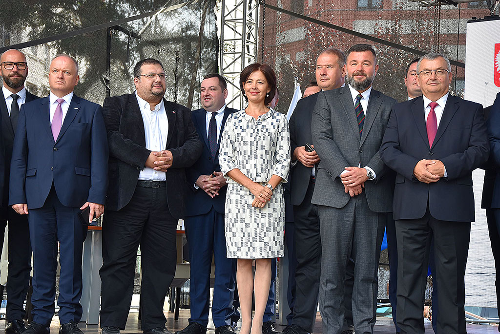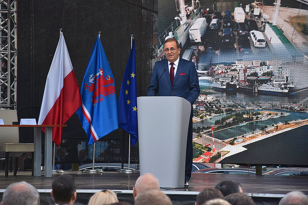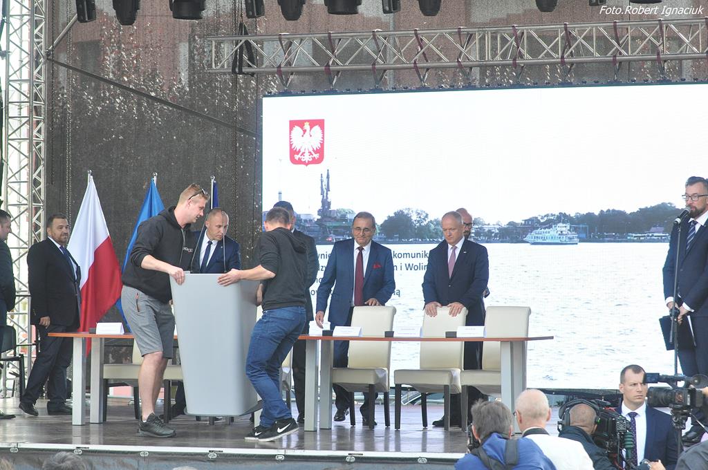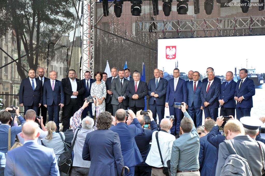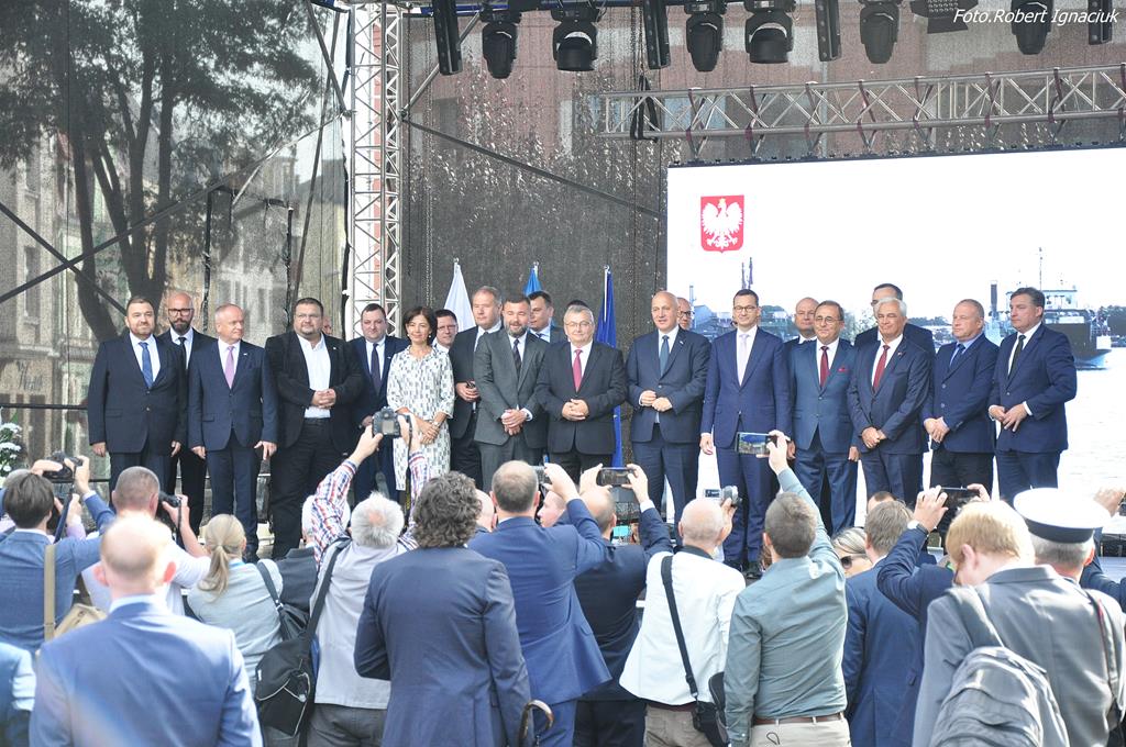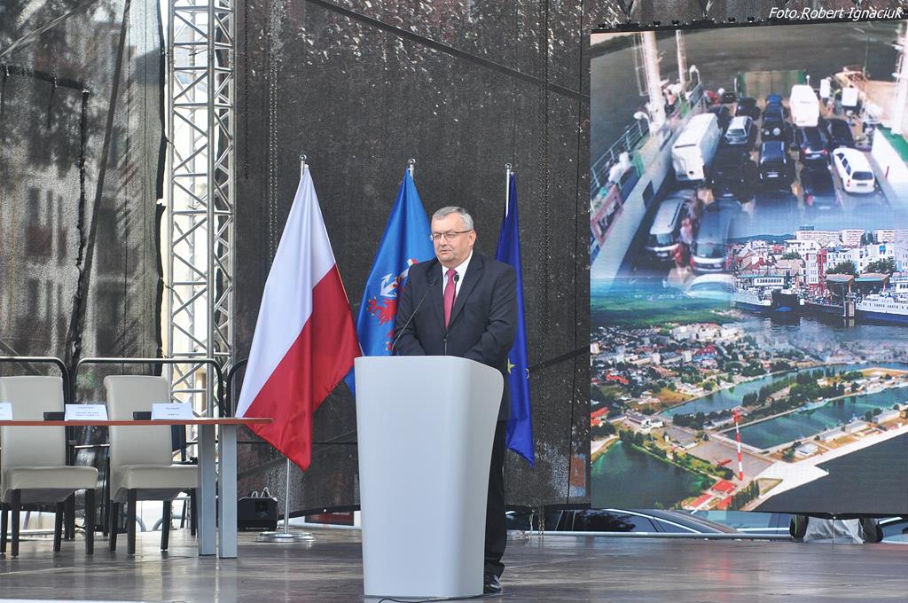 Uroczystość przekazania obowiązków rozpoczęła się od parady burtowej. Oficerowie zdający i obejmujący obowiązki, w towarzystwie zaproszonych gości, przyjęli z pokładu motorówki hydrograficznej MH-1 paradę burtową okrętów stacjonujących w Porcie Wojennym Świnoujście. Złożono również wiązankę kwiatów pod pomnikiem „Tym, którzy przywrócili Pomorze macierzy”. Na uroczystej zbiórce pododdziałów flotylli, meldunek o zdaniu i przyjęciu obowiązków przyjął Inspektor Marynarki Wojennej wiceadmirał Jarosław Ziemiański.