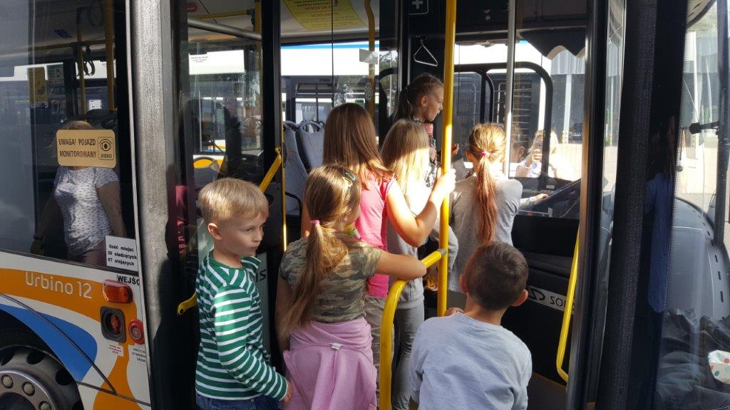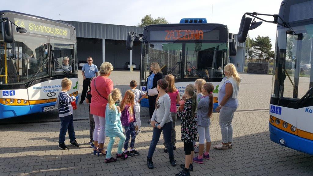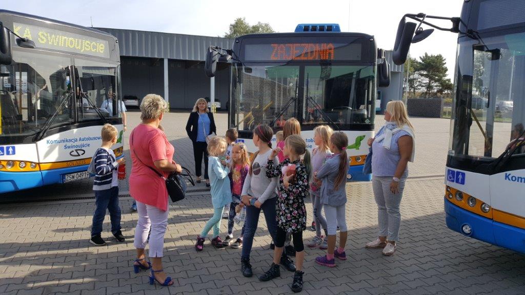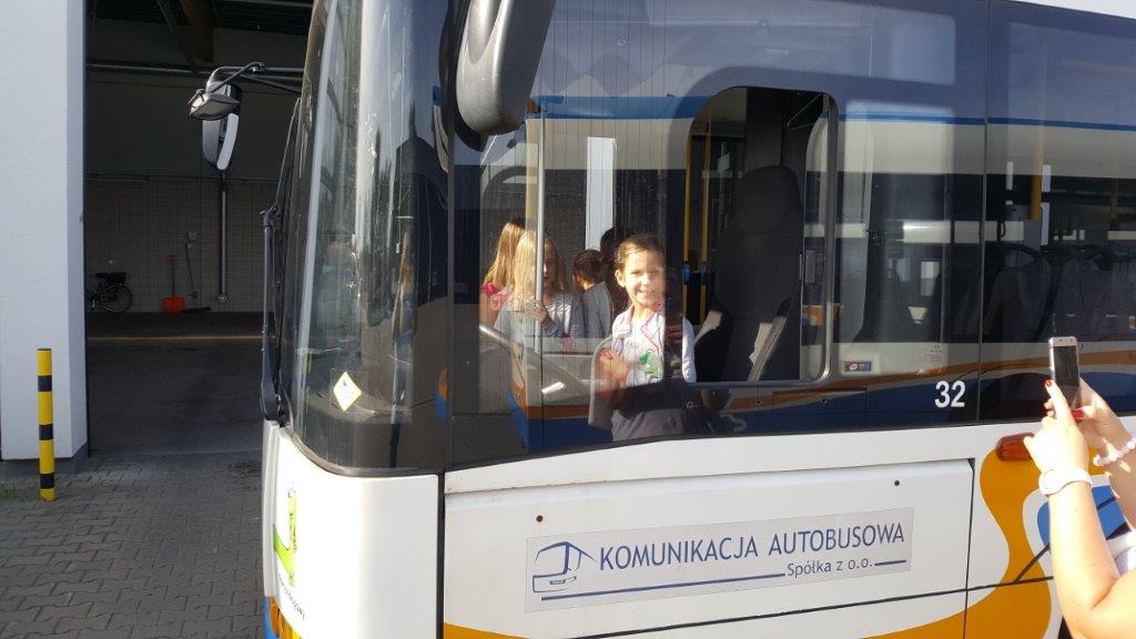 Wizyta w zajezdni autobusowej była interesującą lekcją dla dzieci. Dowiedziały się jak bezpiecznie podróżować autobusami, dlaczego należy trzymać się poręczy, albo ustąpić miejsca starszym.