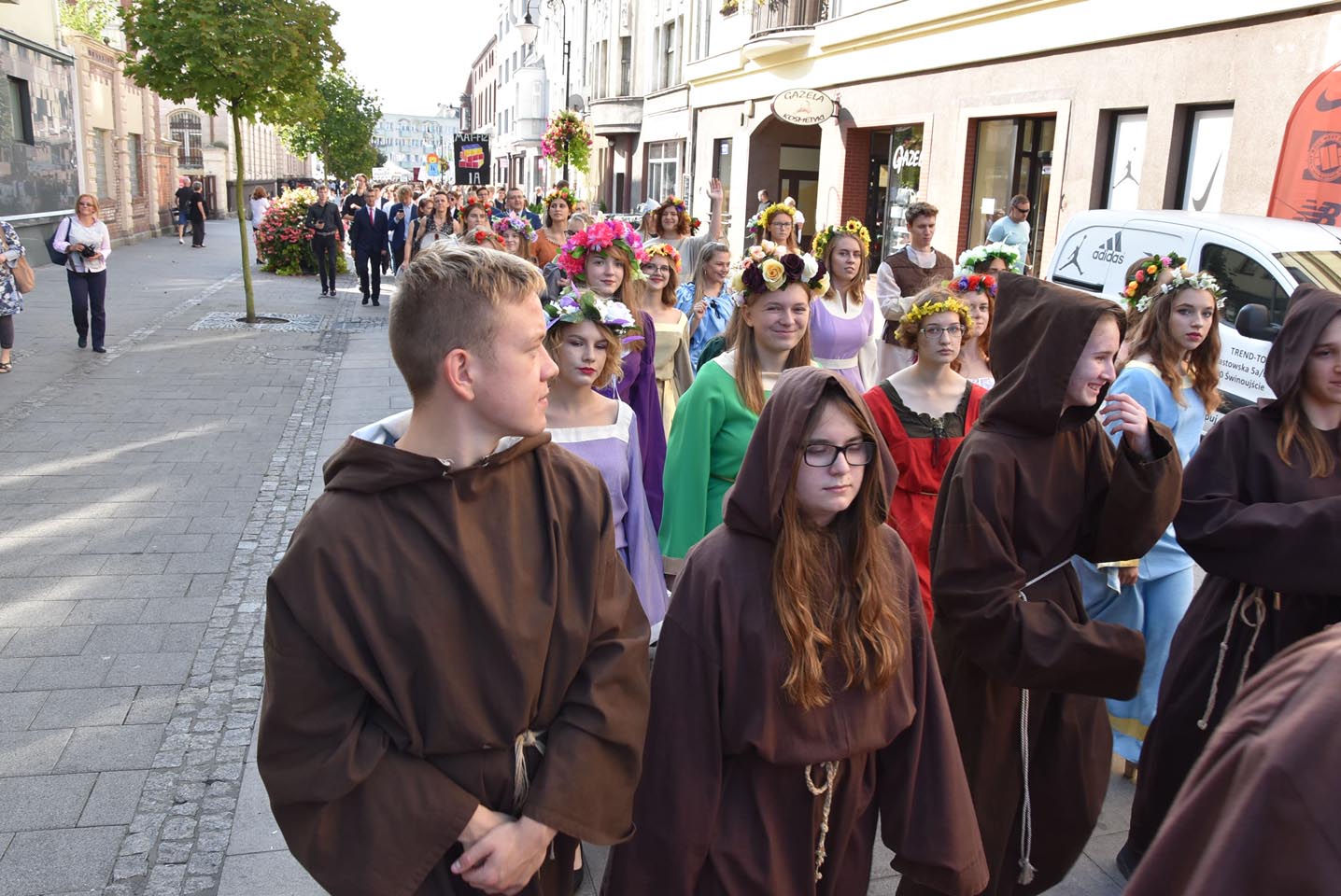Tradycyjnie, pochód prowadzony był przez uczniów przebranych w historyczne stroje. Trasa przemarszu obejmowała ulice: Piastowską, Konstytucji 3 Maja, Marynarzy, Wybrzeże Wł. IV, pl. Słowiański, pl. Wolności, ul. Piłsudskiego, ul. Słowackiego.