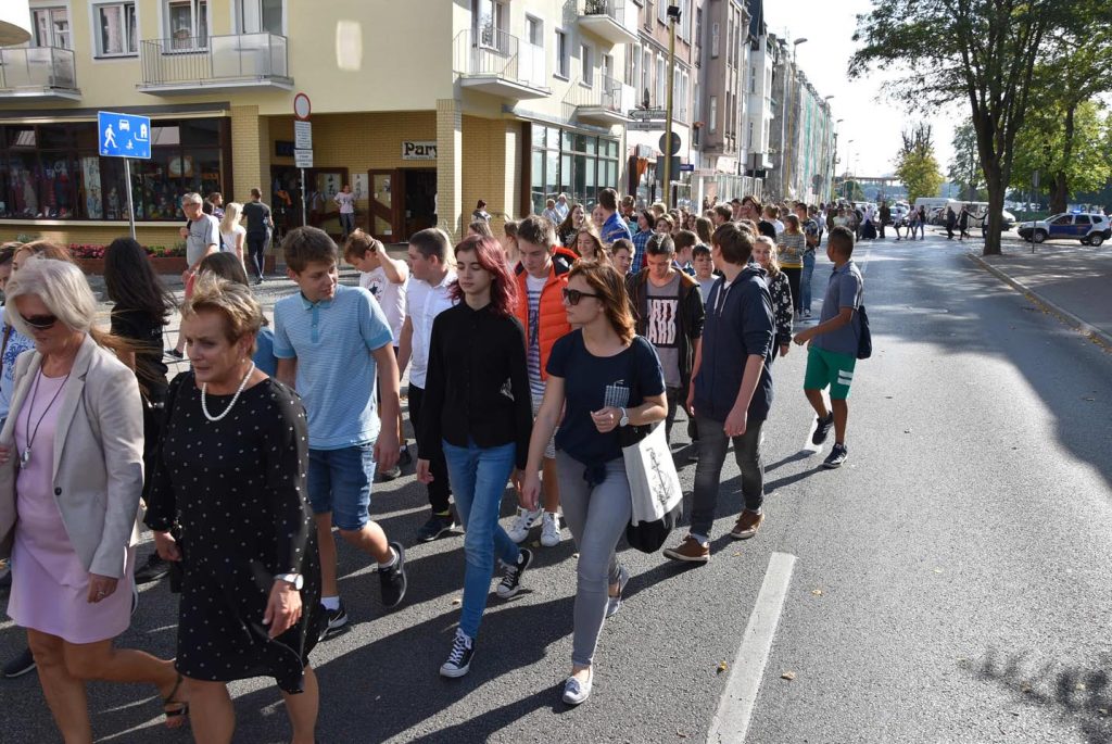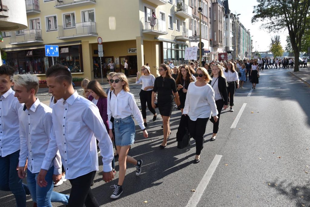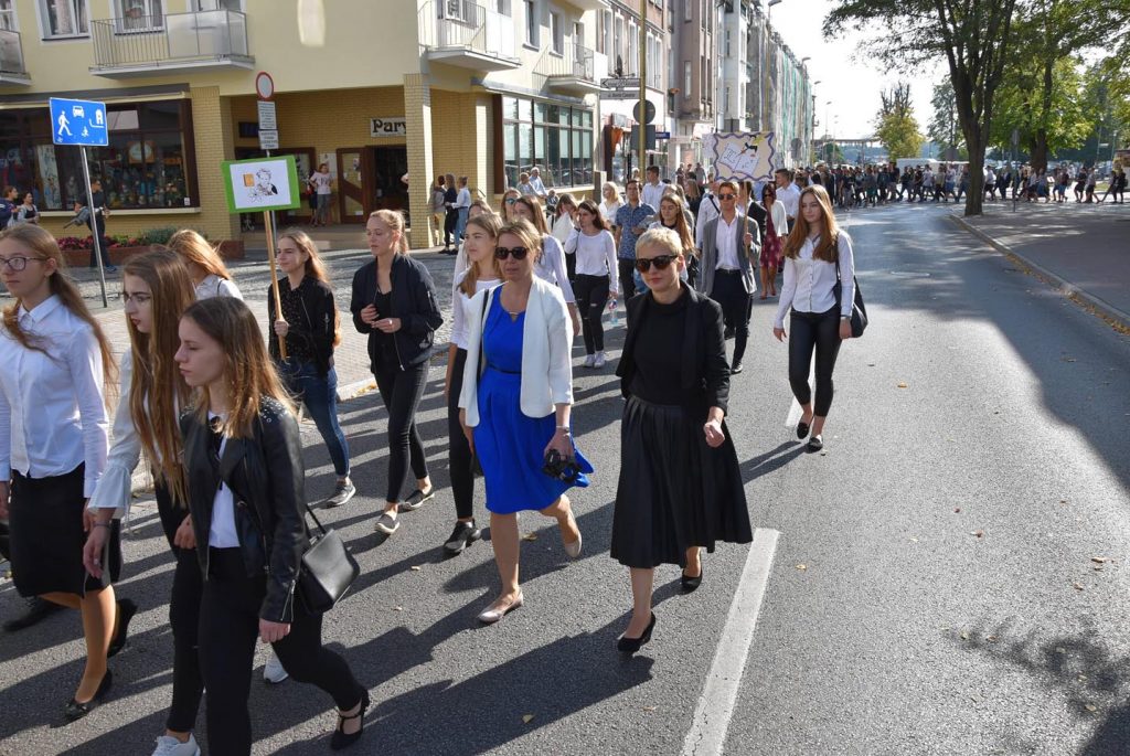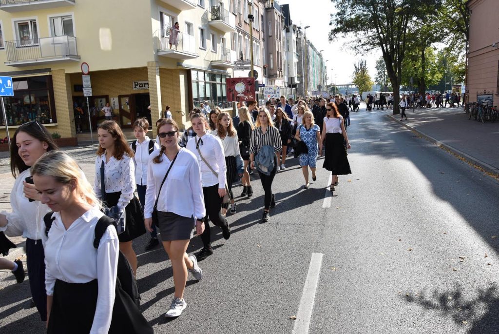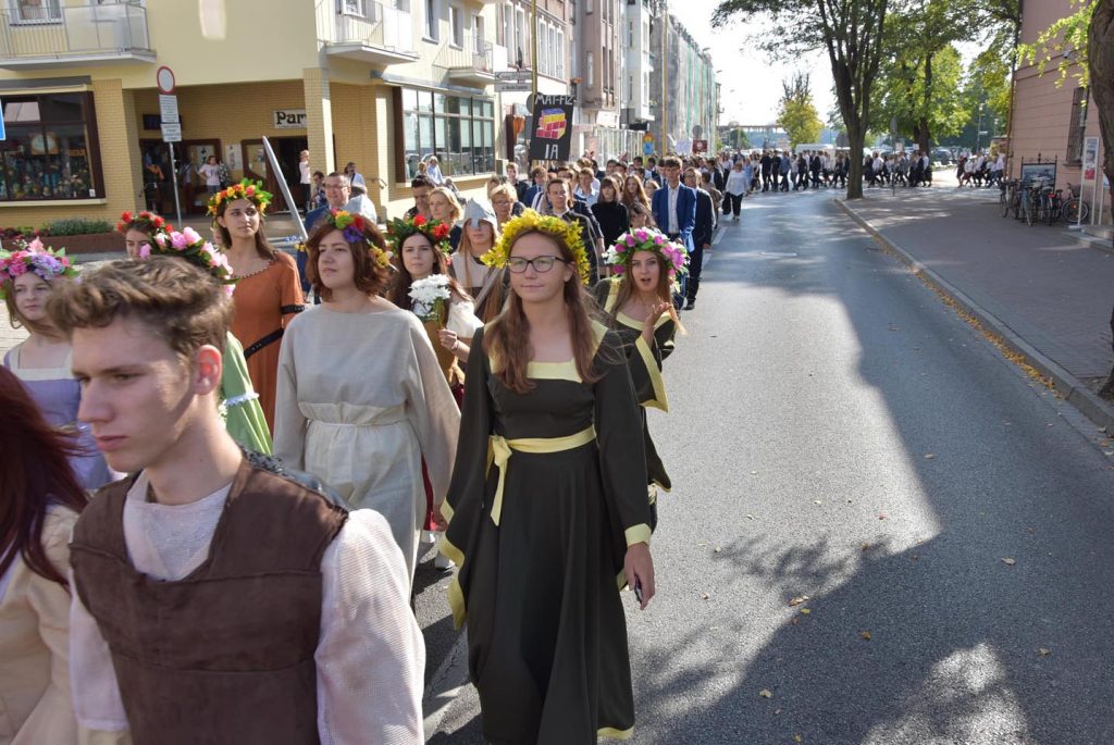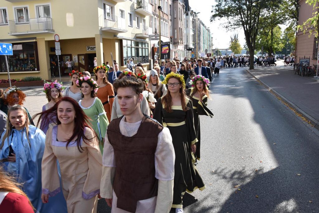 Tradycyjnie, pochód prowadzony był przez uczniów przebranych w historyczne stroje. Trasa przemarszu obejmowała ulice: Piastowską, Konstytucji 3 Maja, Marynarzy, Wybrzeże Wł. IV, pl. Słowiański, pl. Wolności, ul. Piłsudskiego, ul. Słowackiego.