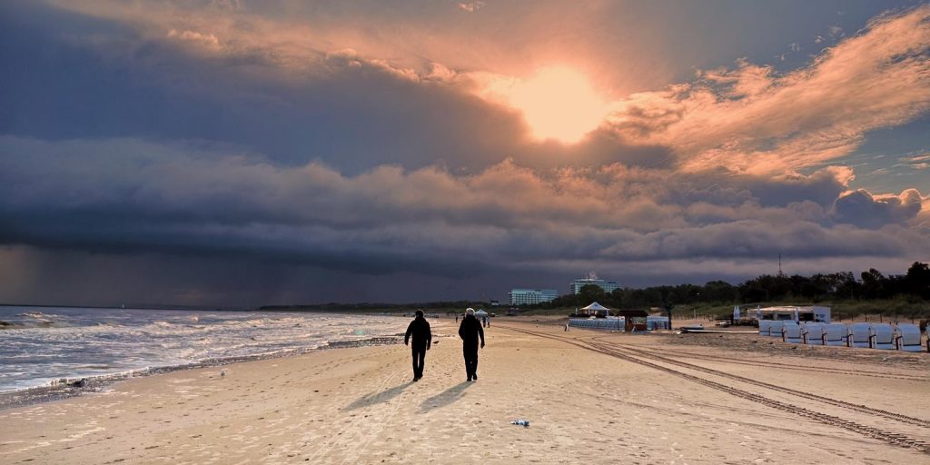 Polska złota jesień to nie tylko parki i lasy, ale także plaża. Chmury o tej porze roku wyglądają przepięknie. W połączeniu z rześkim powietrzem, bałwanami spienionego Bałtyku, tworzą szczególny klimat, który uwielbiają osoby przyjeżdżające do Świnoujścia po zakończeniu wakacji.