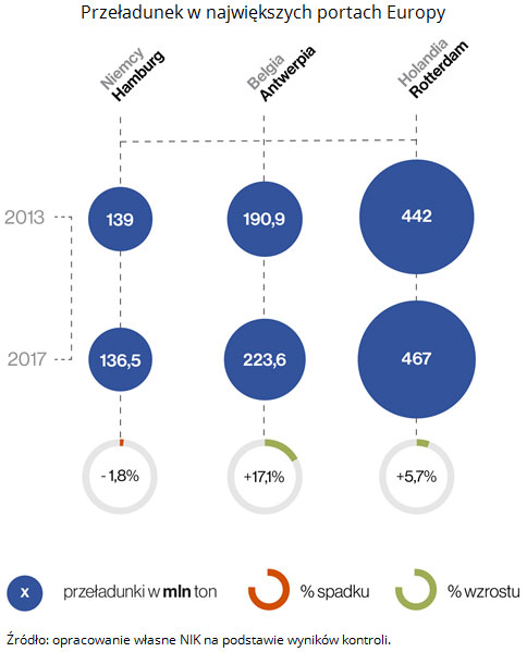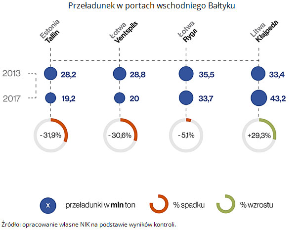 Dla porównania porty we wschodniej części Bałtyku: w Tallinie i Ventspils zanotowały w latach 2013-2017 spadek przeładunku towarów aż o 1/3. Jedynie port w Kłajpedzie odnotował wzrost przeładunku o blisko 30 proc.