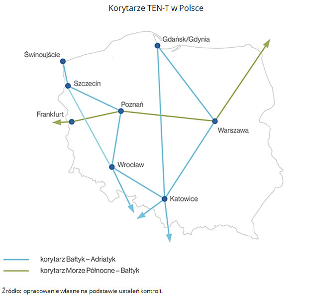Cztery polskie porty o podstawowym znaczeniu dla gospodarki narodowej stanowią węzły bazowe sieci TEN-T i leżą w korytarzu Bałtyk – Adriatyk.
