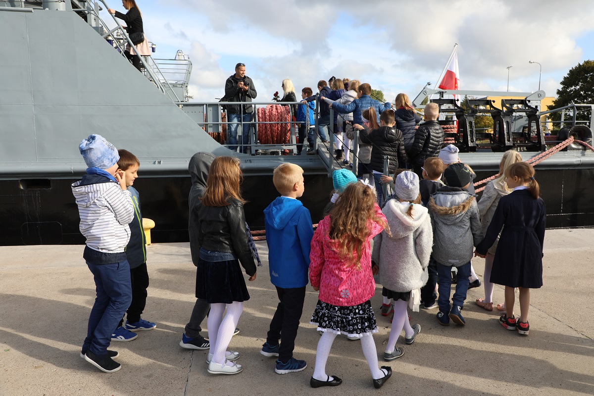 1. Flotylla Obrony Wybrzeża od 1970 roku ściśle współpracuje ze Szkołą Podstawową nr 1 w Świnoujściu, kiedy to szkoła za swojego patrona przyjęła Marynarkę Wojenną RP. Każdego roku organizowanych jest wspólnie kilkanaście imprez, a pasowanie na ucznia klasy pierwszej na pokładzie okrętu wojennego wpisało się na stałe w tradycję szkoły.