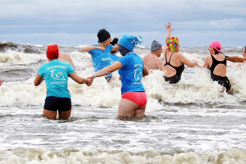 Jesień dla morsów to dobra pora roku, bo na dworze nie trzaskają jeszcze siarczyste mrozy i do kąpieli w zimnej wodzie mogą się przekonać osoby, które chciałyby spróbować takiej rozrywki. Warto zostać morsem, jeśli ktoś chce zrobić coś dla zdrowia. Po uśmiechniętych buziach morsów widać, że pluskanie w morzu sprawia im mnóstwo frajdy.
