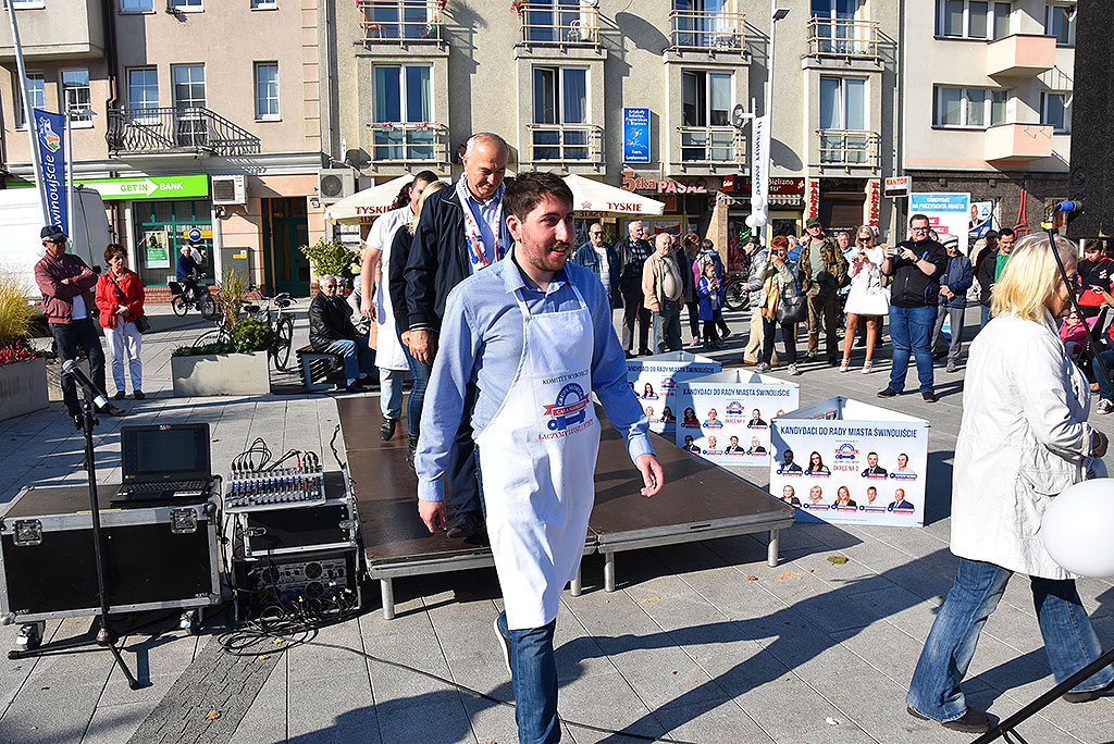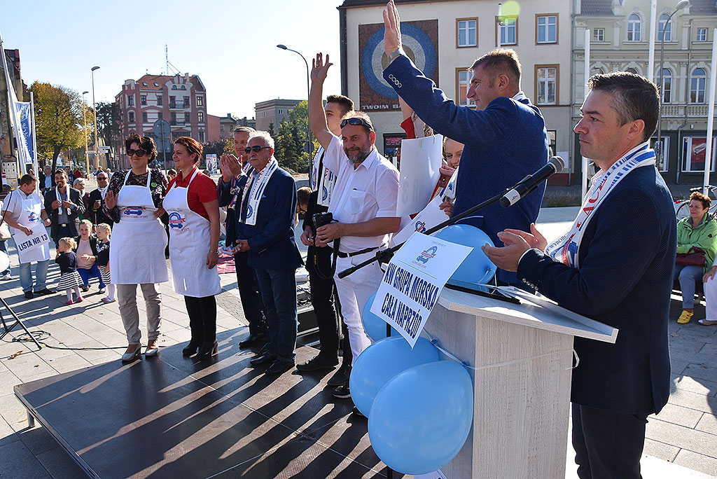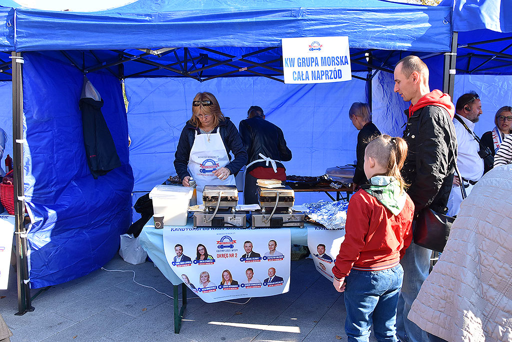 Ciasta, ryby, gofry, rogaliki, cukierki i kanapki ze smalcem – kandydaci na radnych z Komitetu Wyborczy Grupa Morska Cała Naprzód zorganizowali w niedzielę śniadanie dla świnoujścian. Nie zabrakło również tradycyjnej kiełbasy. O wydarzeniu, na kilka dni przed imprezą, przypominał specjalny samochodów z głośnikiem na dachu, który jeździł po największych osiedlach mieszkaniowych.
