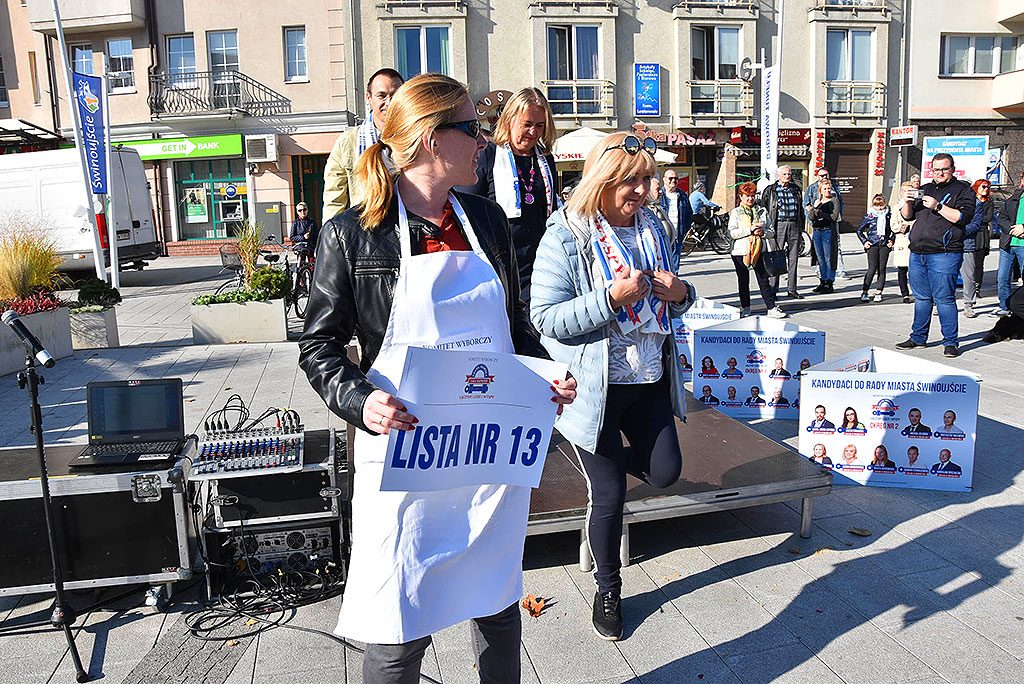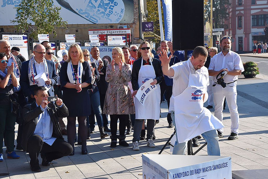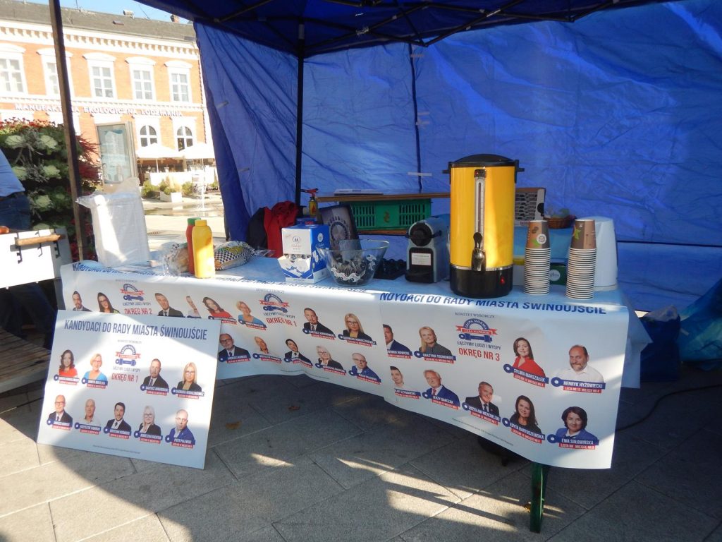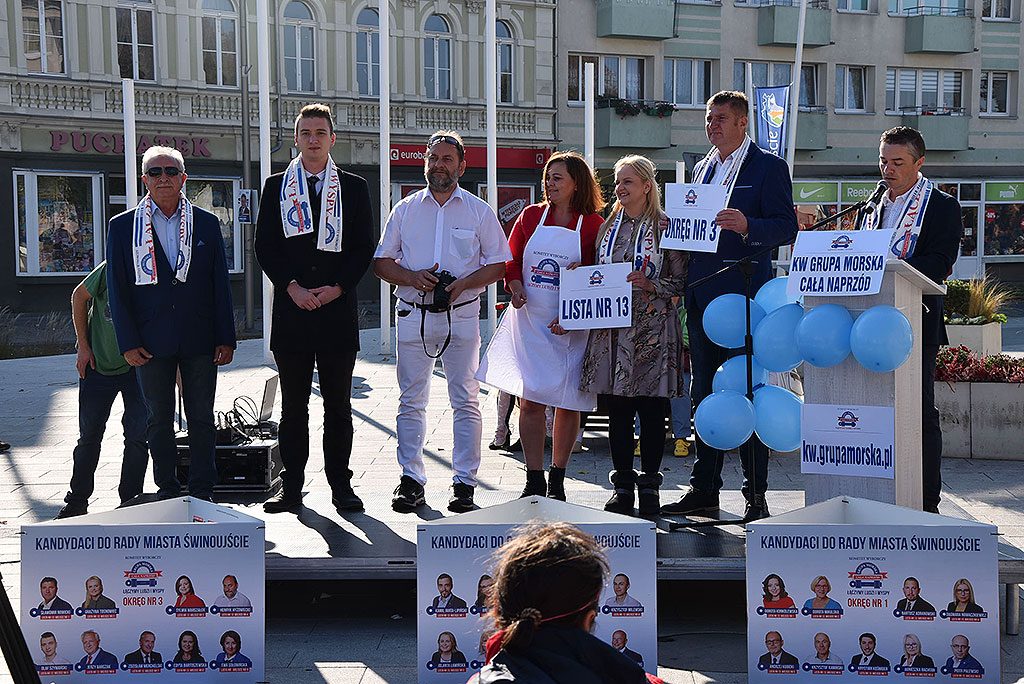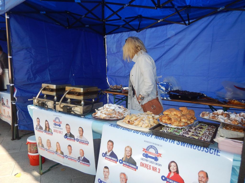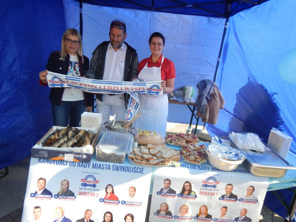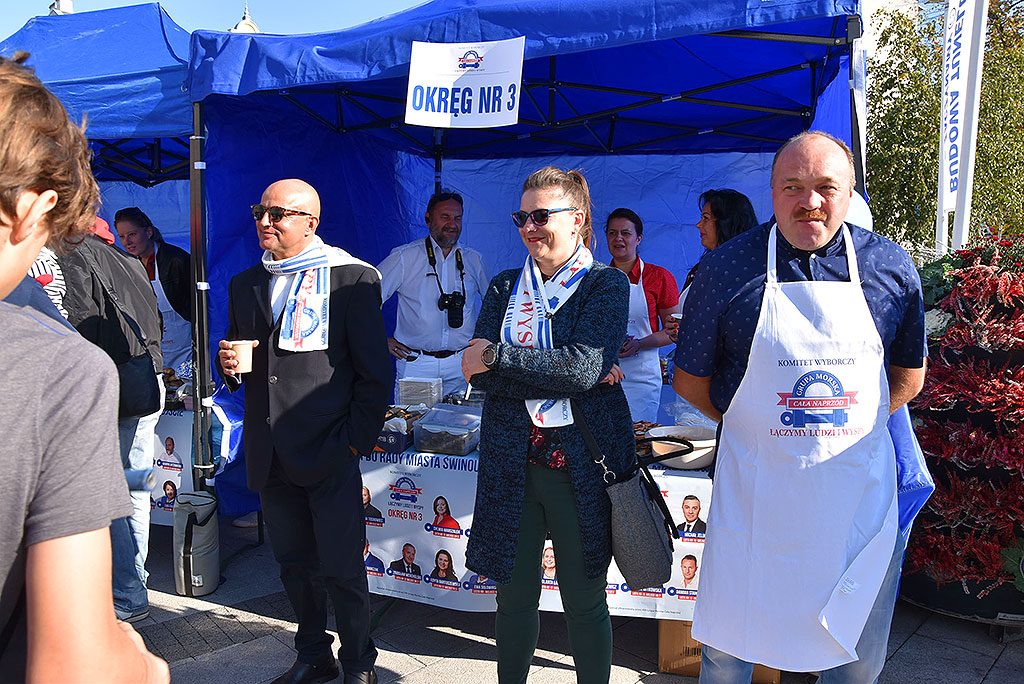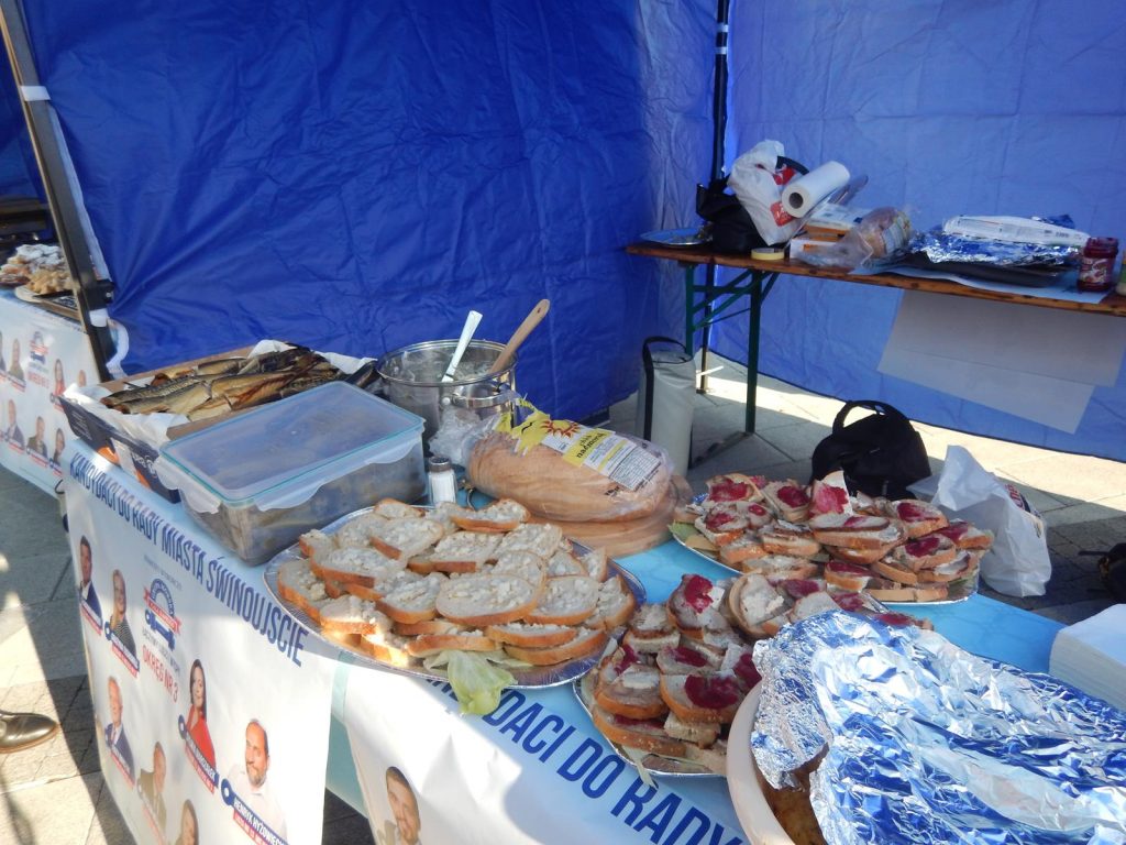 Ciasta, ryby, gofry, rogaliki, cukierki i kanapki ze smalcem – kandydaci na radnych z Komitetu Wyborczy Grupa Morska Cała Naprzód zorganizowali w niedzielę śniadanie dla świnoujścian. Nie zabrakło również tradycyjnej kiełbasy. O wydarzeniu, na kilka dni przed imprezą, przypominał specjalny samochodów z głośnikiem na dachu, który jeździł po największych osiedlach mieszkaniowych.