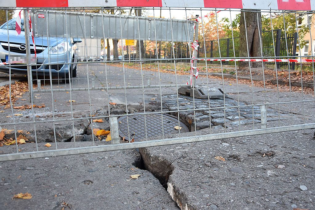 Ulica Grodzka miała pełnić objazd zamkniętego fragmentu ul. Grunwaldzkiej. Jednak ulica wykonana z płyt nie wytrzymała naporu ruchu i we wtorek późnym popołudniem zapadła się na niej studzienka kanalizacyjna. Ulicę zamknięto i wyznaczono nowy objazd – ulicą Karsiborską przy cmentarzu.