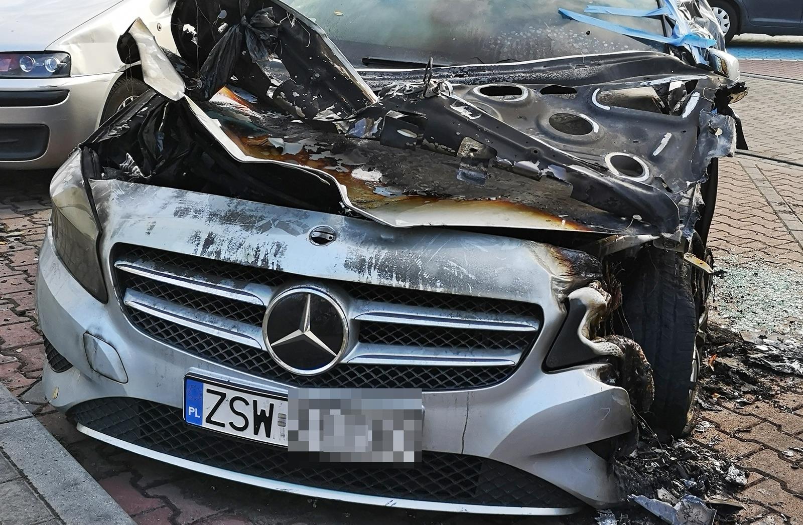 Nocny pożar mercedesa [ZDJĘCIA]