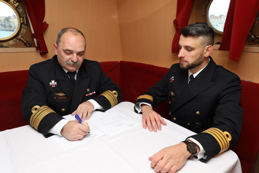 Uroczystość objęcia obowiązków dowódcy okrętu odbyła się zgodnie z marynarskim ceremoniałem w obecności załogi oraz zaproszonych gości. W trakcie uroczystości komandor porucznik Robert Lisowski – dowódca 12. Dywizjonu Trałowców wręczył nowemu dowódcy „Znak Dowódcy Okrętu” symbol sprawowania władzy nad okrętem i jego załogą. Znak ten powiewać będzie na maszcie ORP Hańcza przez cały okres dowodzenia okrętem przez kapitana marynarki Piotra Bartosewicza. Nowy dowódca otrzymał także Odznakę Piątkową Dowódcy Okrętu MW RP, którą będzie miał prawo nosić na mundurze do końca swojej służby wojskowej. Podczas uroczystości, dowódca dywizjonu życzył nowemu dowódcy ORP Hańcza wszelkiej pomyślności, sukcesów w realizacji celów oraz dowódczego szczęścia, natomiast kapitan marynarki Piotr Bartosewicz podziękował za zaufanie i powierzenie mu odpowiedzialnej funkcji dowódcy okrętu.