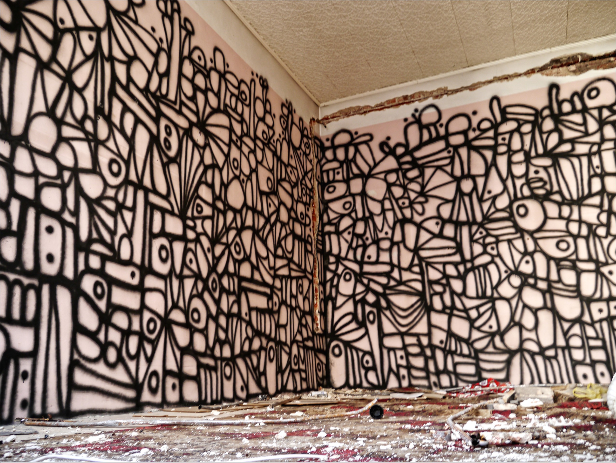 Na listopadowej wystawie w ms44, pokazujemy bogatą dokumentację fotograficzną obrazującą performatywne działania Piotra Pasiewicza, w przestrzeniach post-industrialnych, a także w dawnych obiektach użyteczności publicznej i mieszkaniowej. Czyli w zdegradowanych pustostanach. Na potrzeby projektu, w przestrzeni galerii zostanie odtworzona „przestrzeń zdegradowana” w której Pasiewicz wykona działanie będące powtórzeniem dotychczasowych akcji w przestrzeniach miejskich. Stwarzając tym samym, instalację jako dominujący element wystawy. Uzupełnieniem dokumentacji i samego procesu twórczego, to przedstawienie ponad dwudziestu prac graficznych Piotra Pasiewicza (wklęsłodruków), uzupełniających całość merytorycznie i wyjaśniających pochodzenie używanego przez niego graficznych znaków. Wystawa w ms44, ma znamiona przekroju poprzez dotychczasową działalność twórczą artysty, jednak z uwypukleniem prac, powstających podczas otwartego procesu artystycznego w przestrzeniach miejskich.