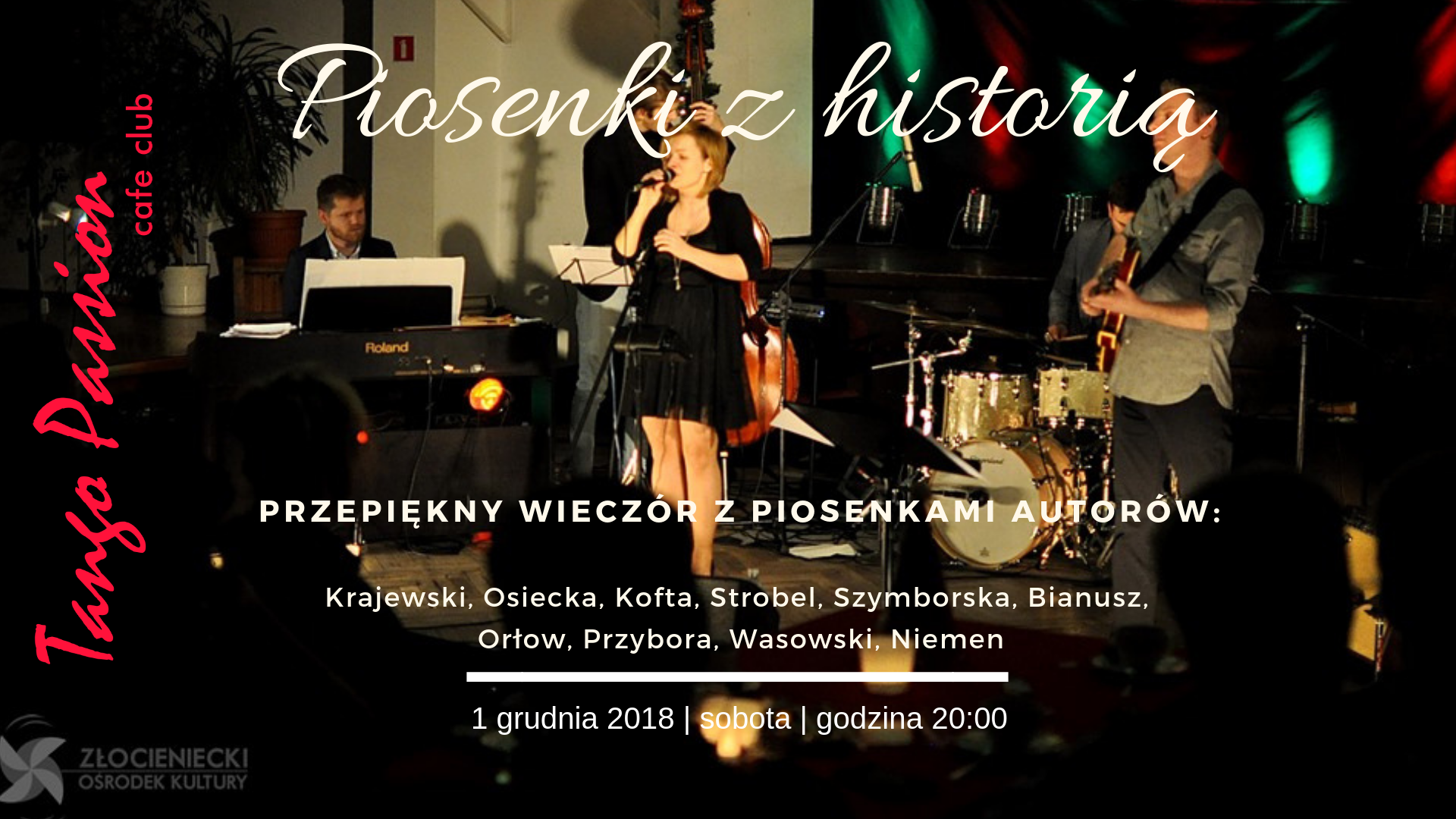 Piosenki z historią – pod taką nazwą świetna, utalentowana, coraz bardziej rozchwytywana wokalistka Karolina Śmietana wraz z zespołem wystąpi w świnoujskiej klubo kawiarni Tango Passion.