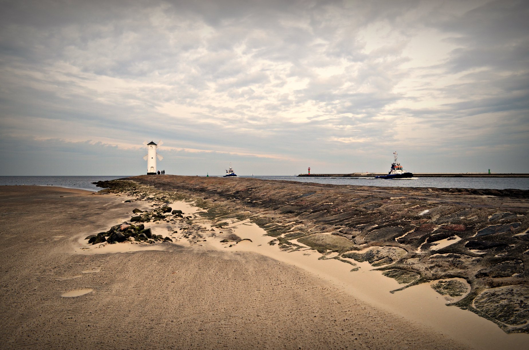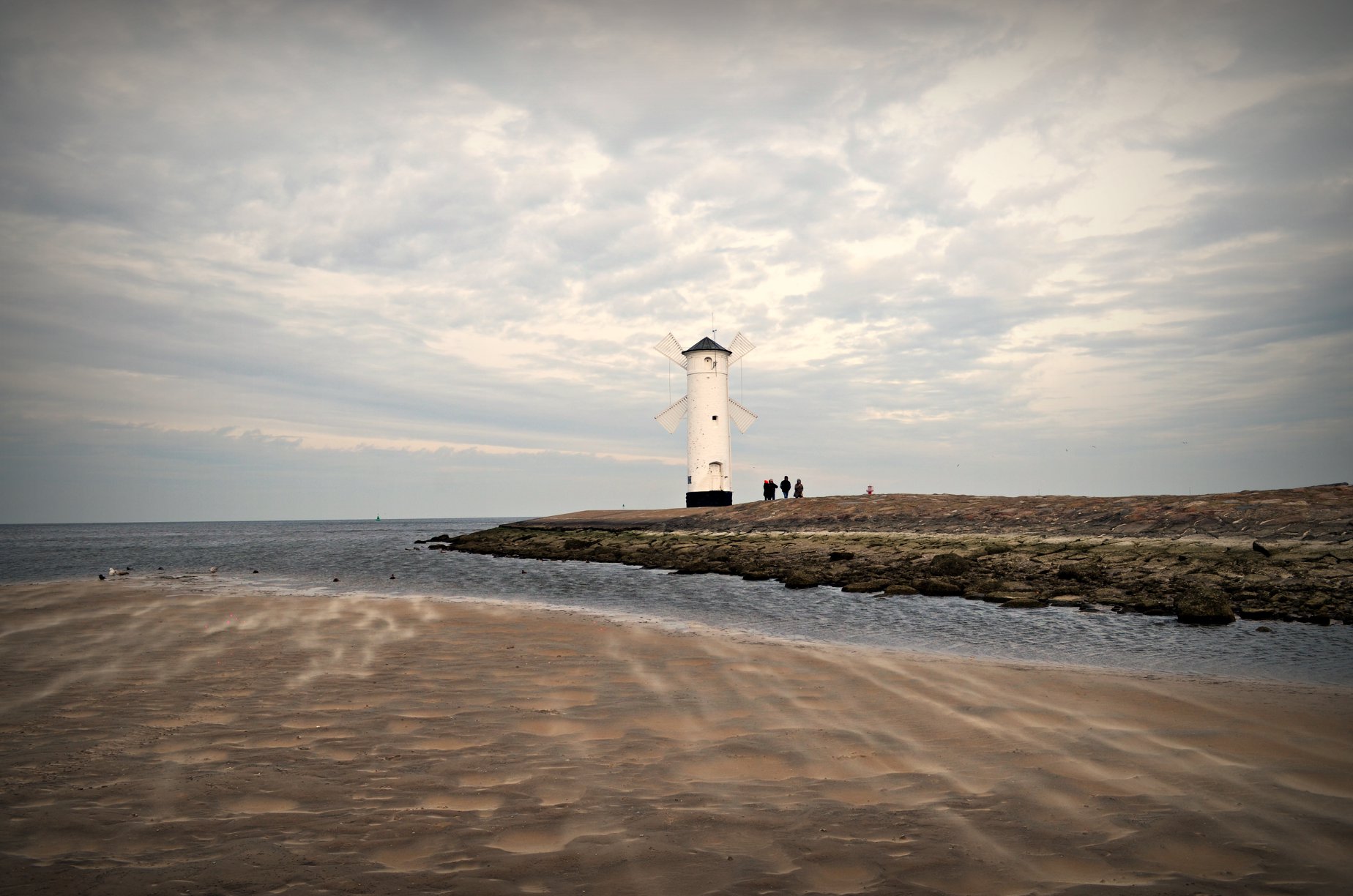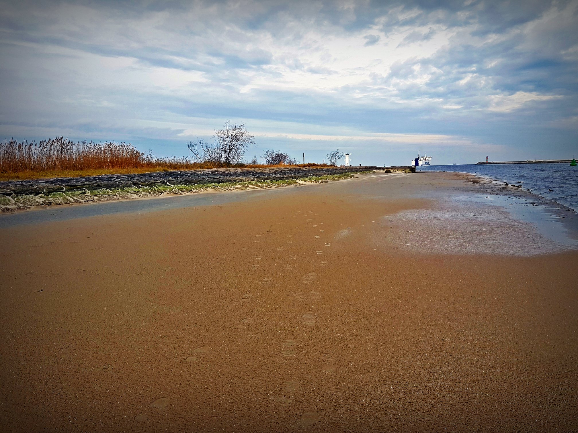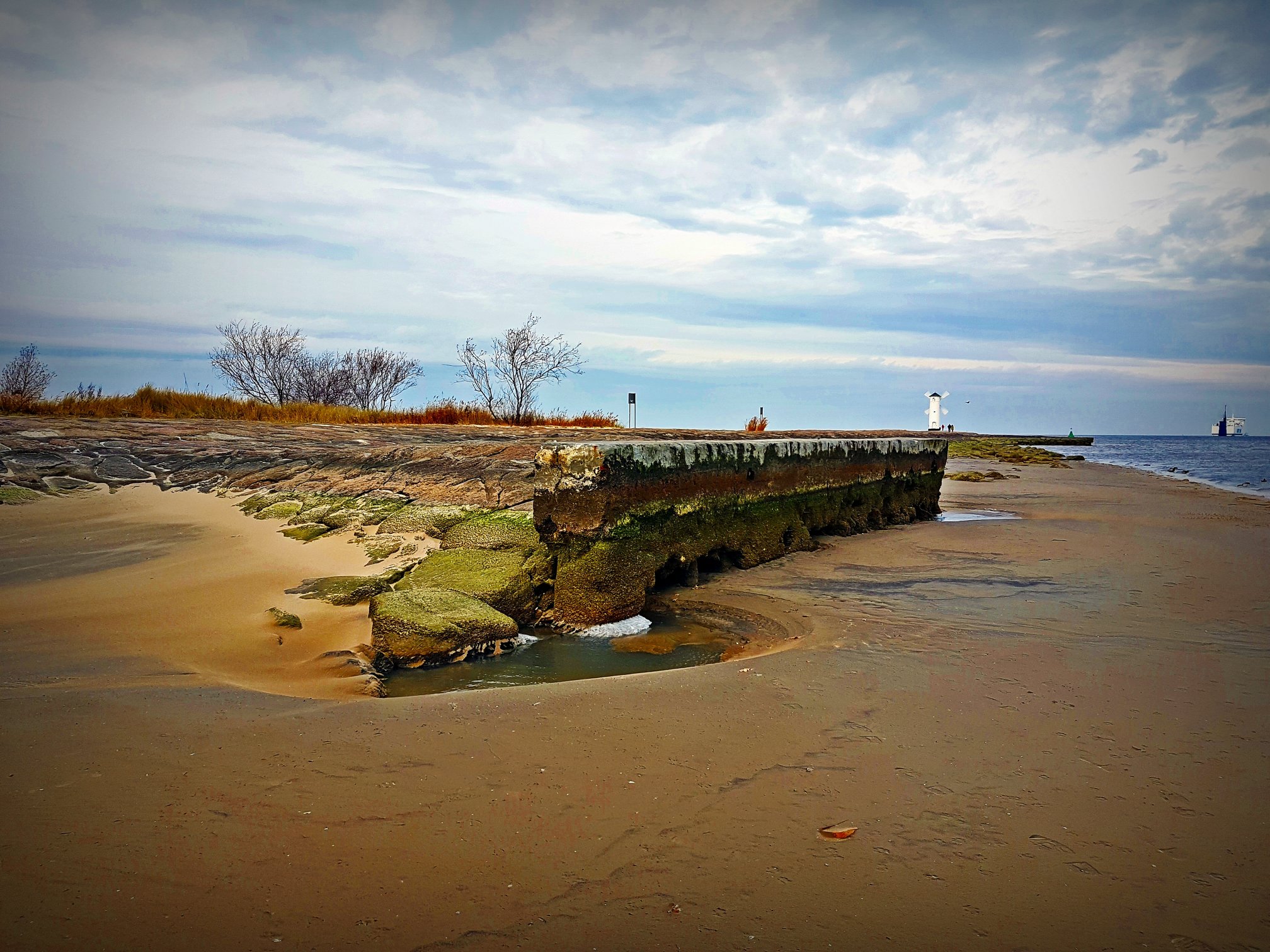 Wiejący w czwartek silny południowy wiatr spowodował rekordowo niski stan wody w Bałtyku. Nie tylko świnoujska plaża znacznie się powiększyła, ale niska woda odsłoniła też zalane dotąd elementy falochronu zachodniego.