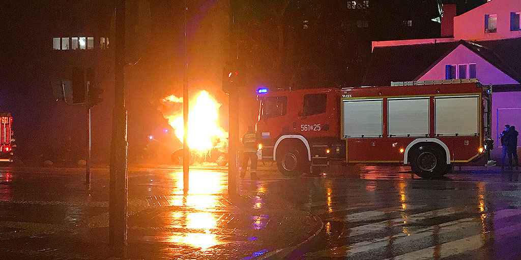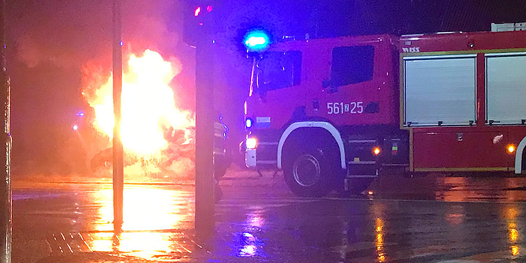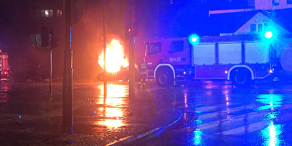 Przybyli na miejsce strażacy zastali stojące na poboczu ulicy samochód. Ogień obejmował kabinę samochodu. Strażacy zabezpieczyli miejsce zdarzenia i przystąpili do gaszenia pożaru. W tym czasie policjanci ustalili personalia właściciela auta.