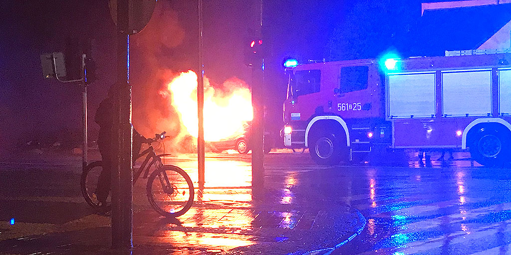 Pożar samochodu w centrum miasta [ZDJĘCIA i FILM]
