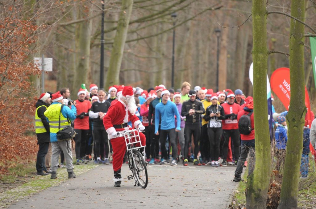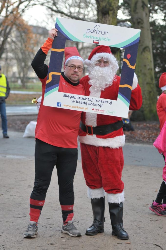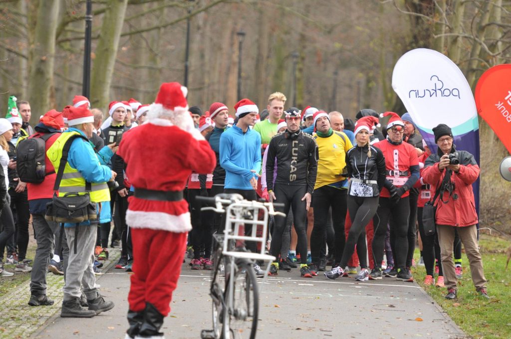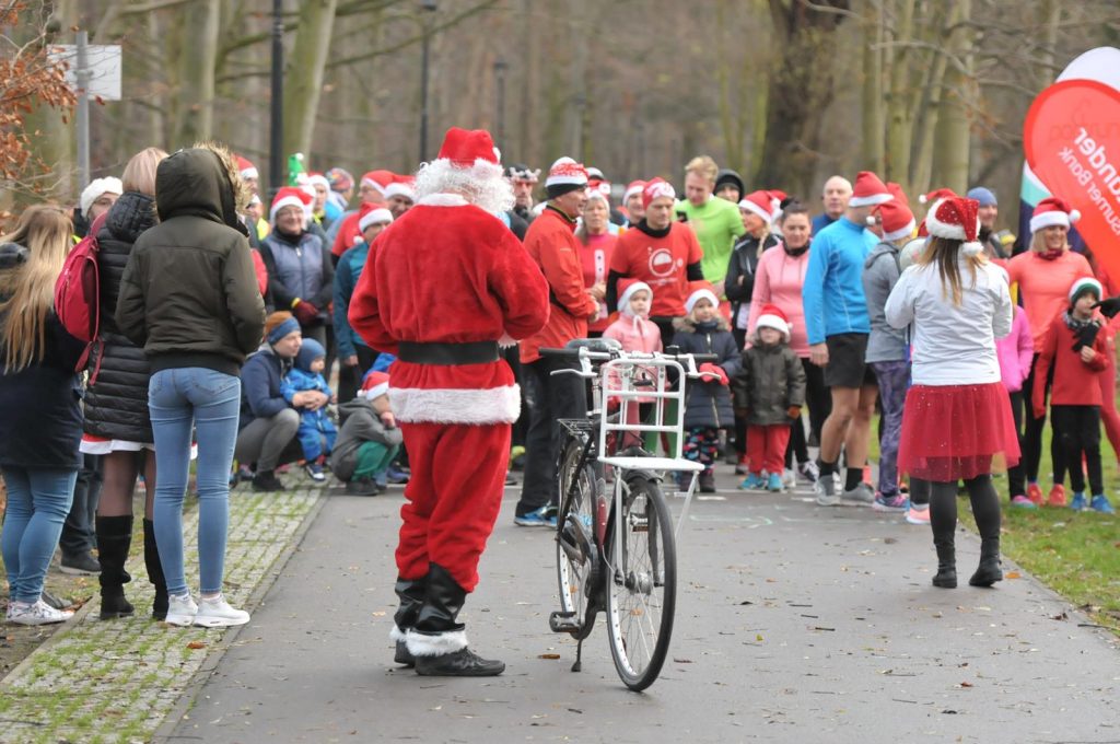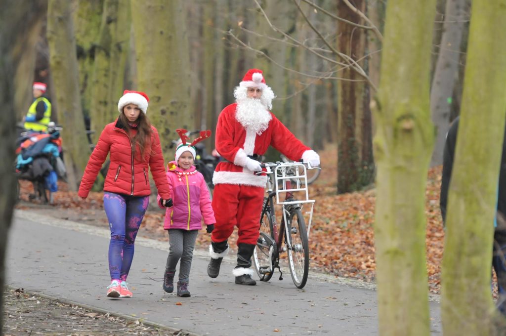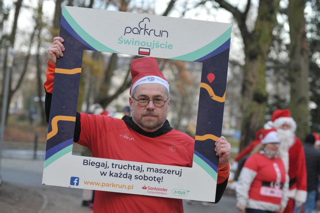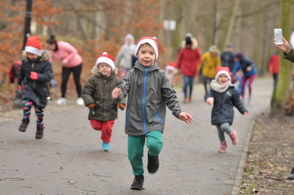 Czerwone peleryny, mikołajowe czapki i sztuczne brody mieli na sobie biegacze, którzy wzięli udział w sobotnim biegu w ramach parkrun.