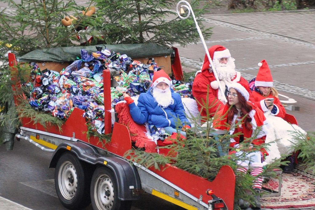Orszak św. Mikołaja w asyście straży miejskiej przyjechał na Plac Kościelny. Zanim jednak dotarł na lewobrzeże, zatrzymał się na chwilę na Warszowie, a także w szpitalu.