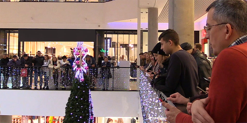 Szkoda że nikt nie zauważył że na pierwszym piętrze znajdował się Chór Uniwersytetu Szczecińskiego i że śpiewał kolędę Cicha Noc w 4 językach (polskim, niemieckim, angielskim, hiszpańskim i na koniec raz jeszcze w języku polskim).