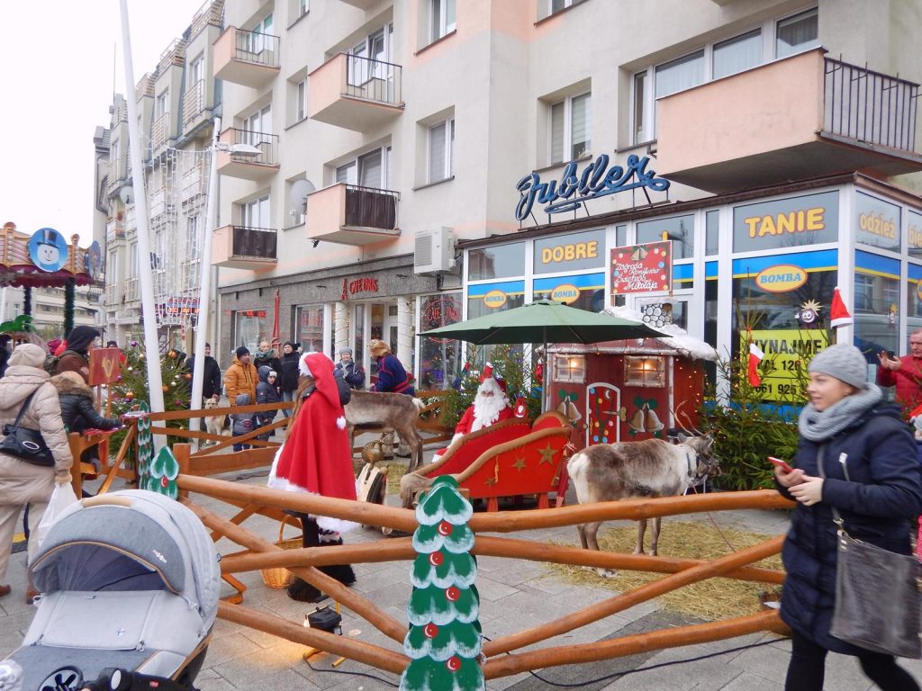 Mikołaj i dwa renifery w zagrodzie, drewniane stragany ze świątecznymi upominkami, bezpłatna karuzela dla dzieci, skrzynka, do której można wrzucić list z życzeniami – w Świnoujściu na pl. Wolności trwa Jarmark Bożonarodzeniowy. Chętnych do zrobienia sobie zdjęcia z Mikołajem nie brakuje. Czasami trzeba odstać chwilę w kolejce. W sobotę będzie można za darmo przejechać się kolejką św. Mikołaja, a na scenie zobaczyć jak rzeźbi się w lodzie.