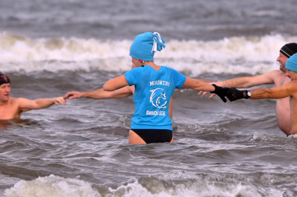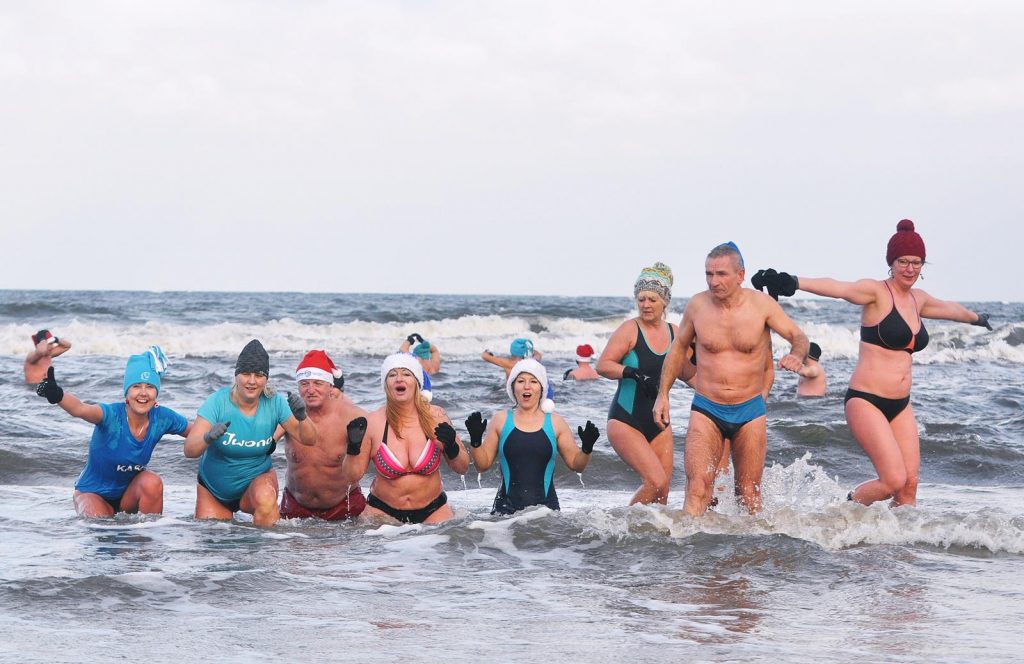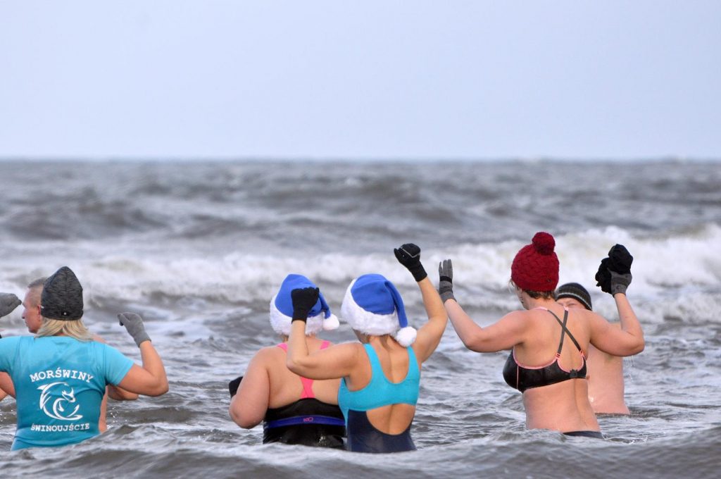 Pogoda w Boże Narodzenie sprzyjała nie tylko spacerom po plaży. Grupa świnoujskich morsów postanowiła wykąpać się w lodowatym morzu. Świąteczna kąpiel między falami trwała kilka minut. W tym czasie spacerowicze z zaciekawieniem obserwowali śmiałków pluskających się w wodzie.