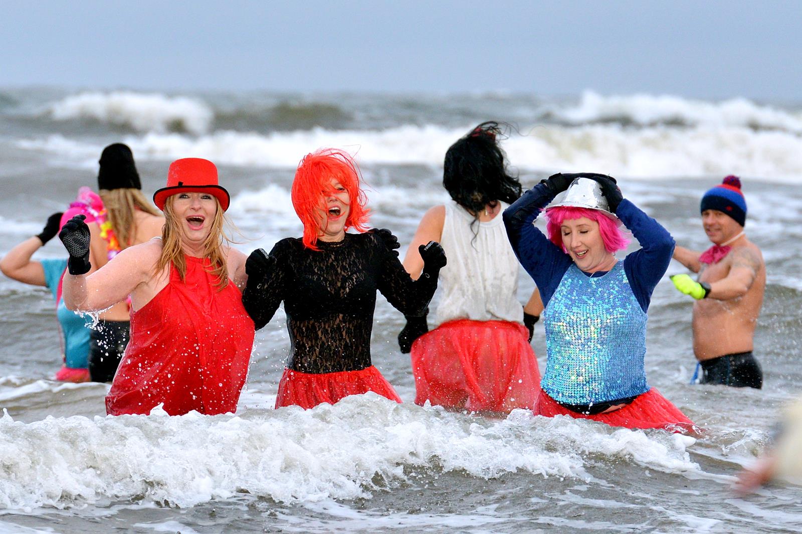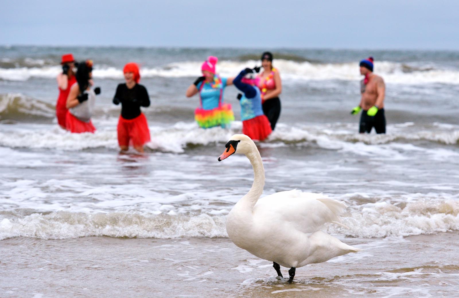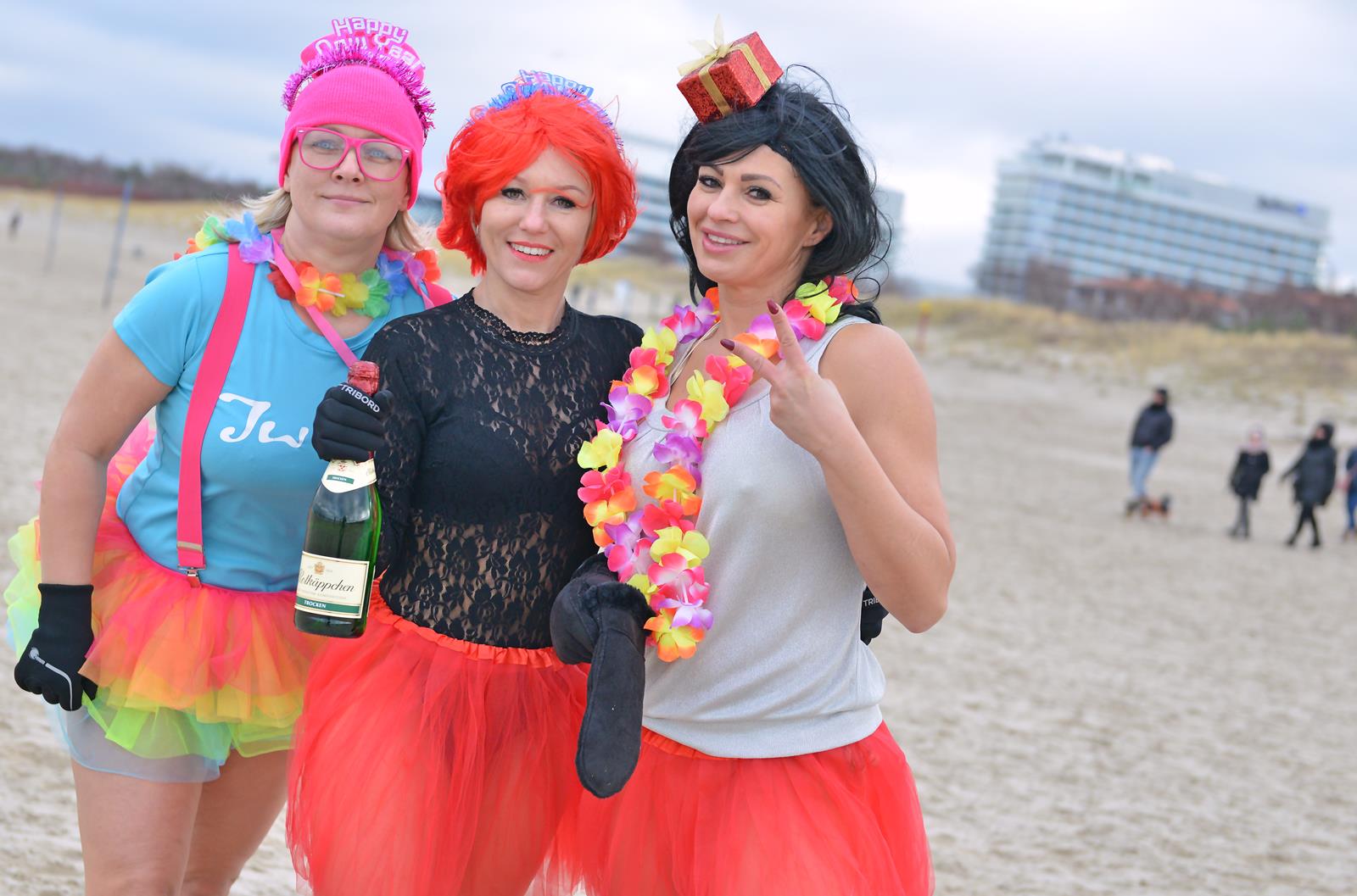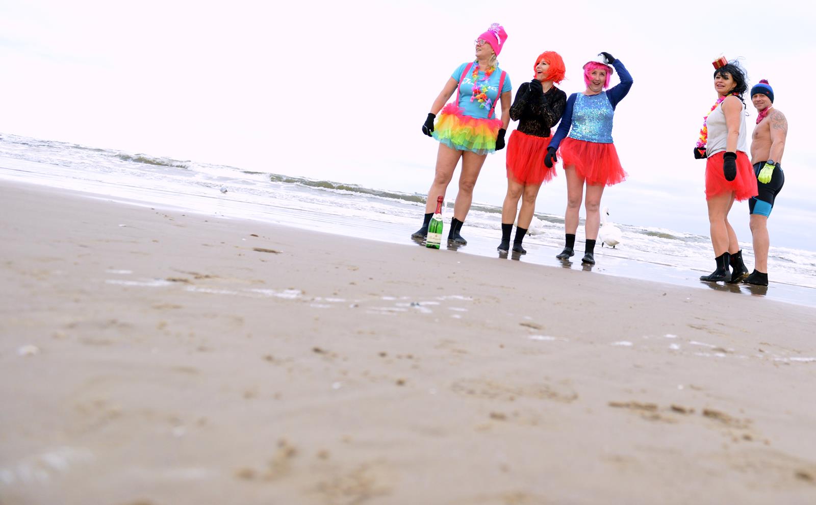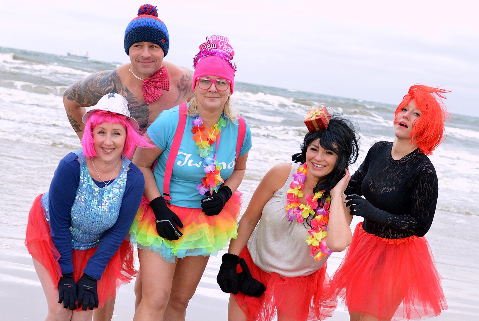 Świnoujskie morsy pożegnały stary rok w wodzie. Jak przystało na na miłośników zimnych kąpieli – weszli do lodowatej wody ubrani w kolorowe przebrania.