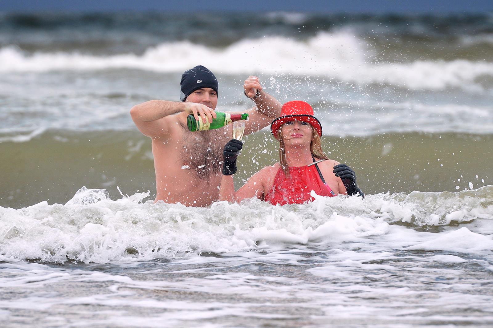 Na pożegnanie starego roku. Zimny szampan w zimnym Bałtyku